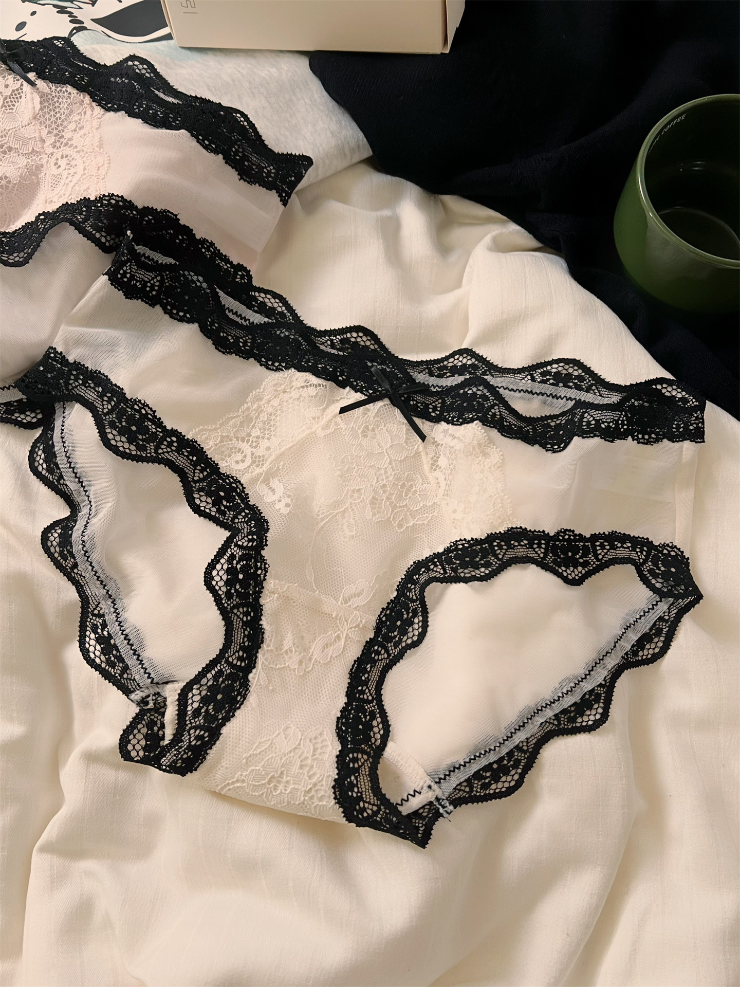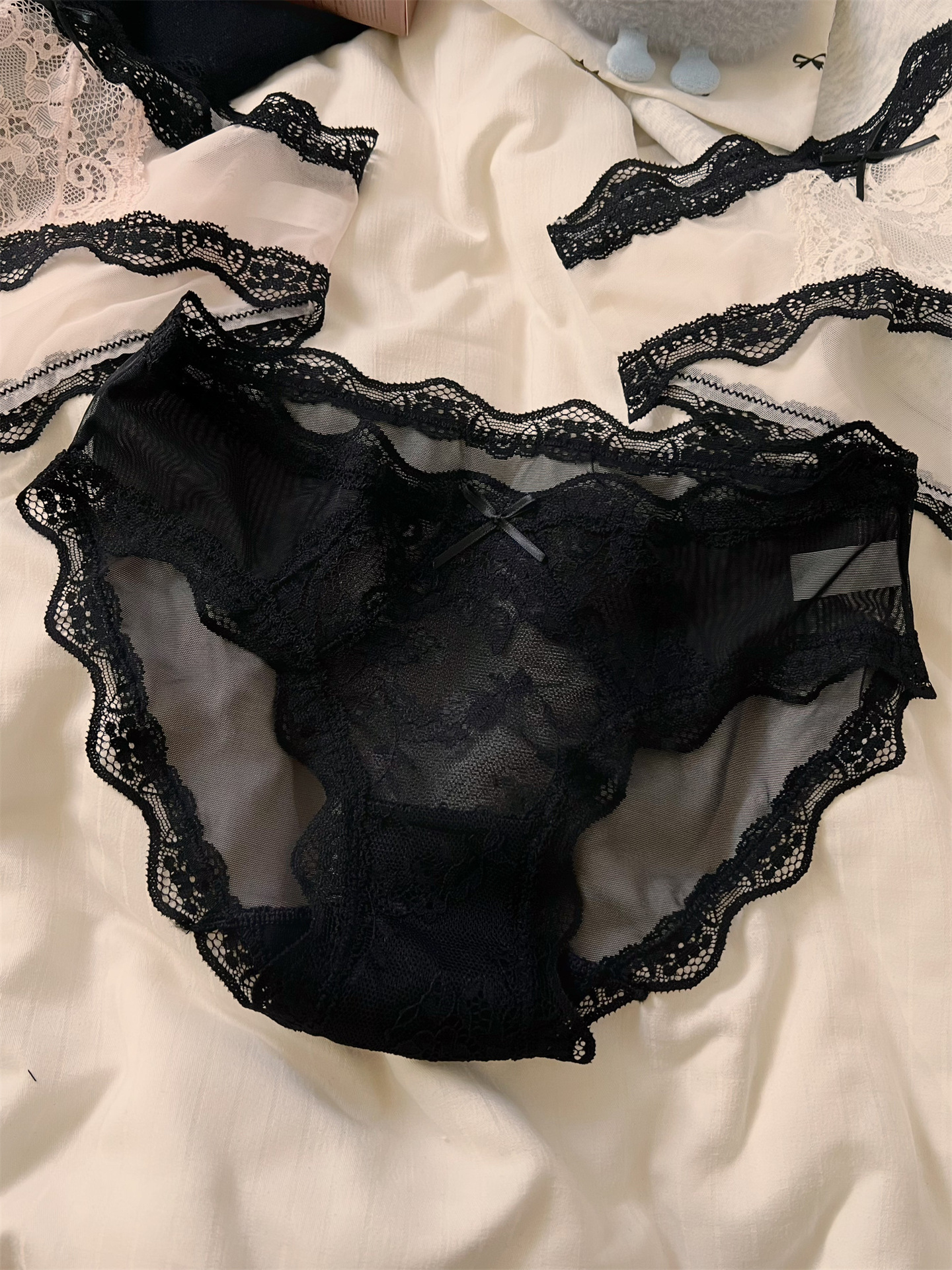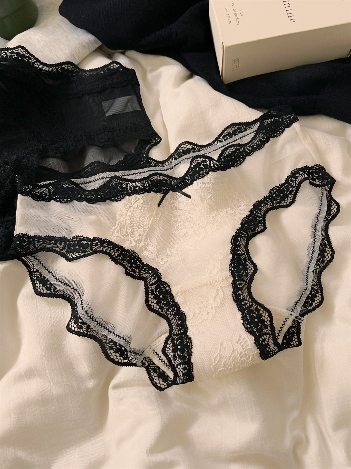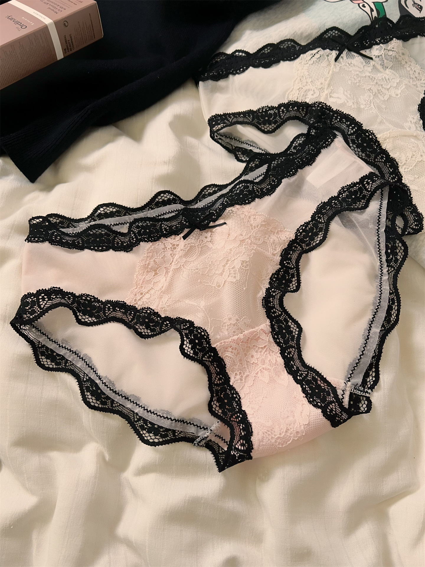 패셔너블하고 섬세한 기술~섹시한 레이스 팬티, 메쉬 통기성 소녀의 절묘한 리본, 피부 친화적인 로우 웨이스트 팬티