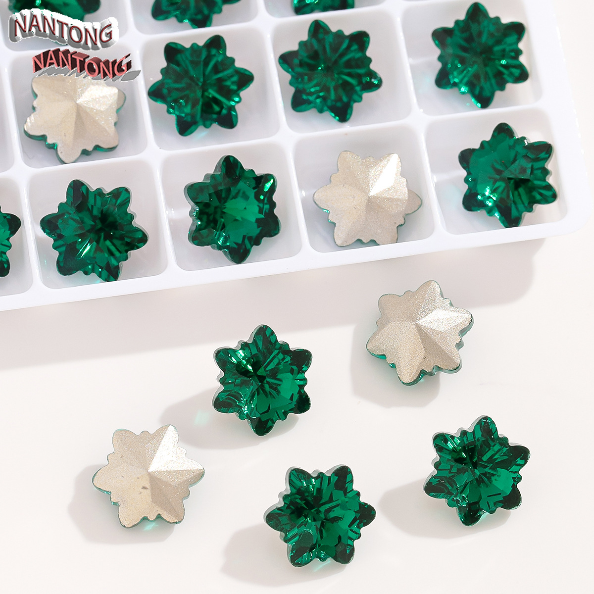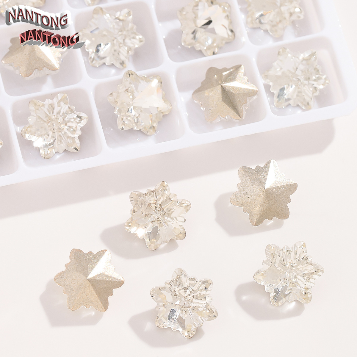 • 10*10mm 눈송이 아이스 플라워 포인트 바닥 유리 크리스탈 다이아몬드 1개 [60개/개]