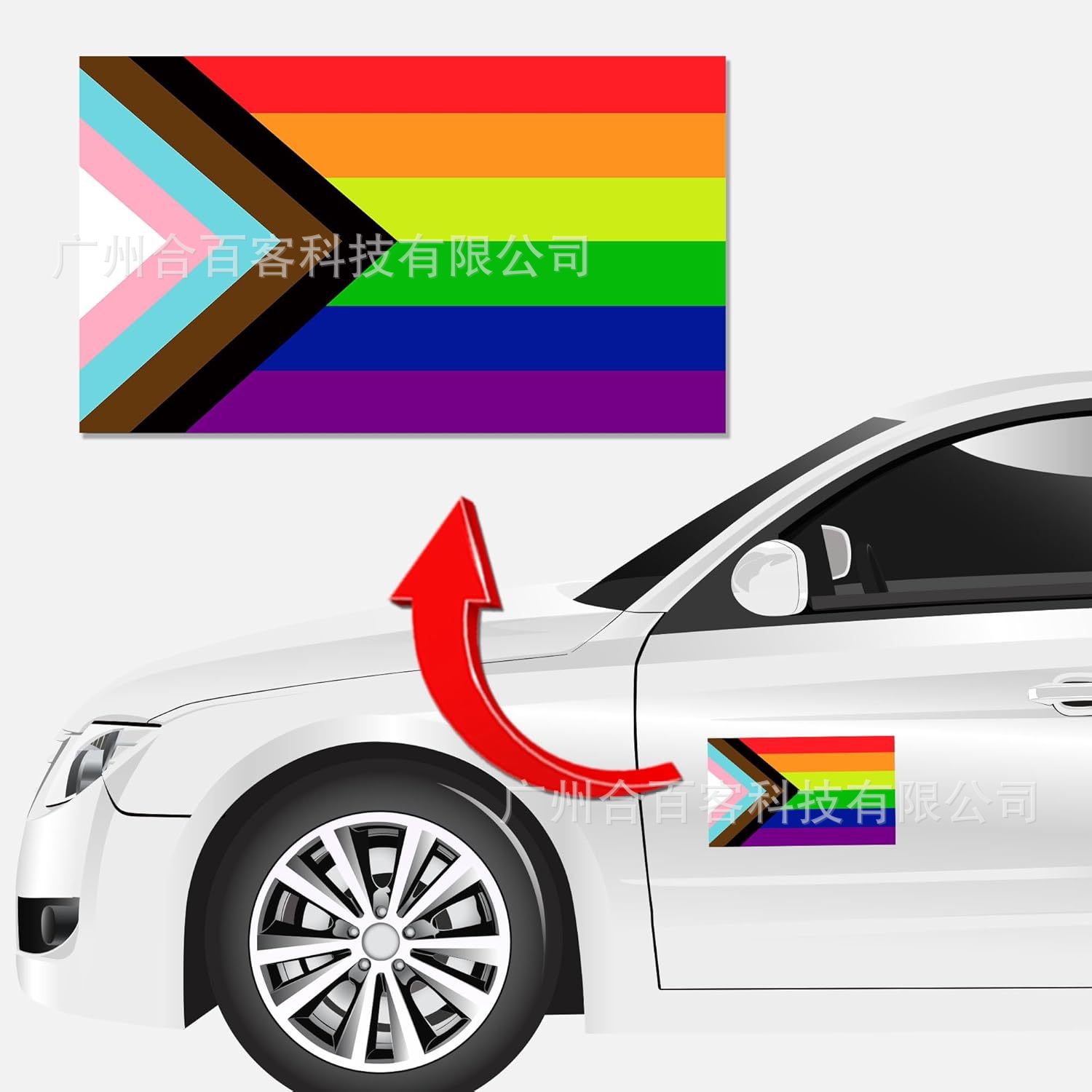 국경 간 인기 판매 자동차 스티커 자석 반사 무지개 깃발 데칼 무지개 깃발 무료 깃발 스티커스토어 가기