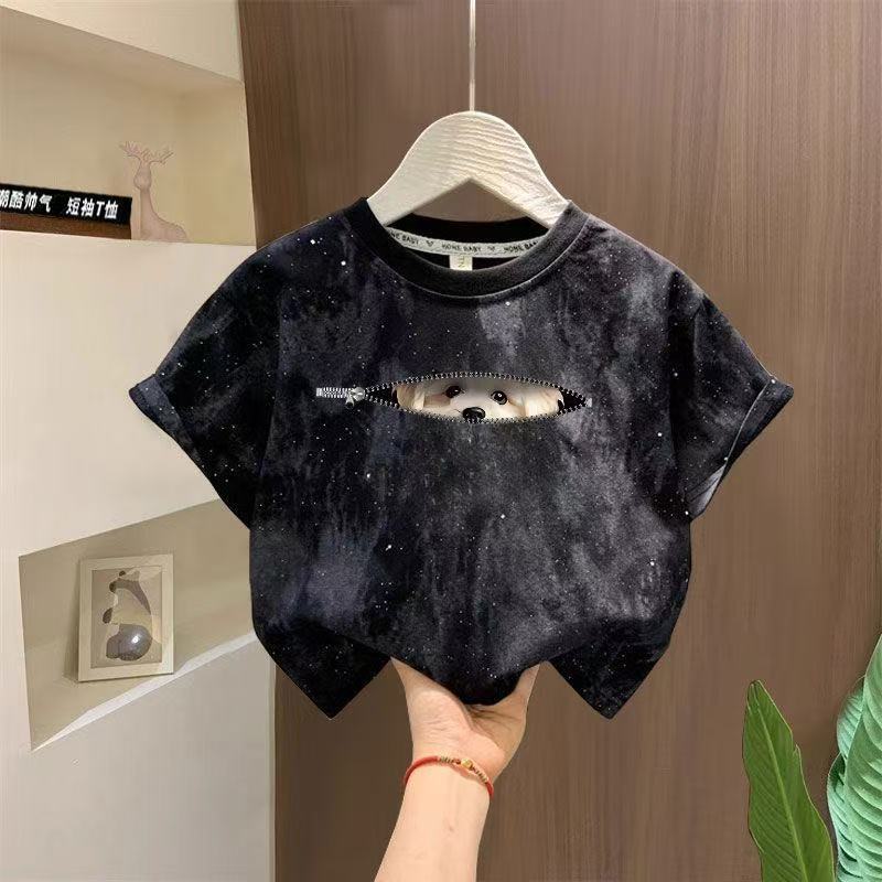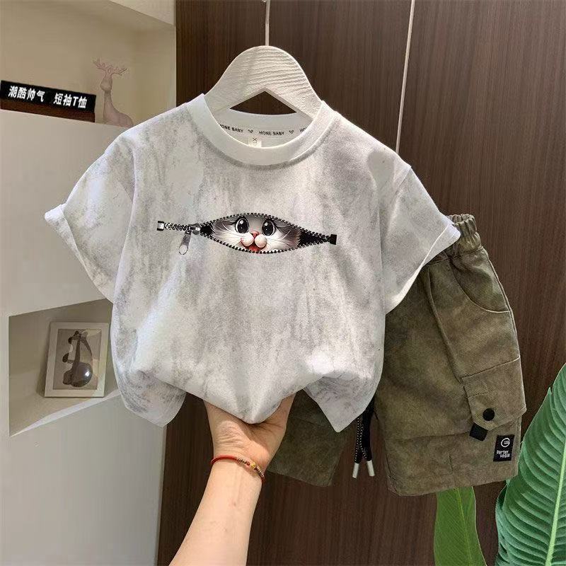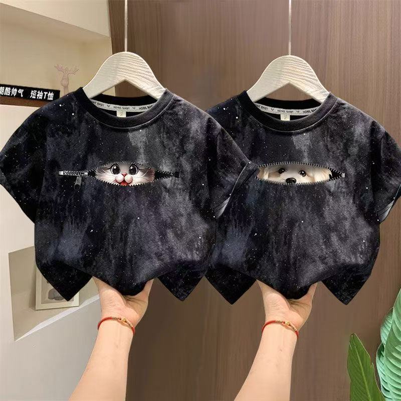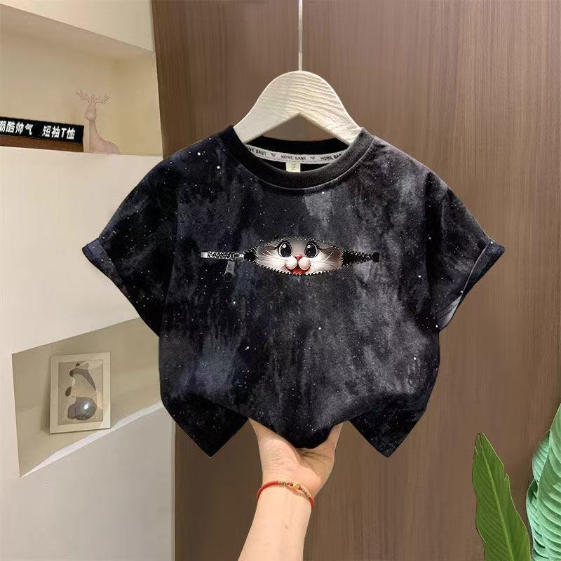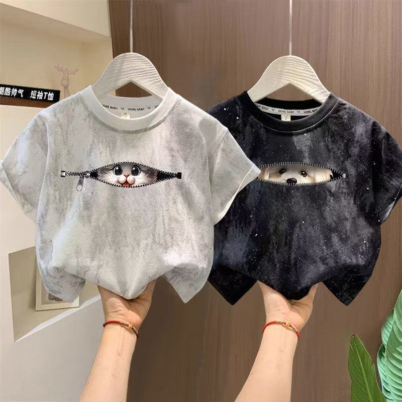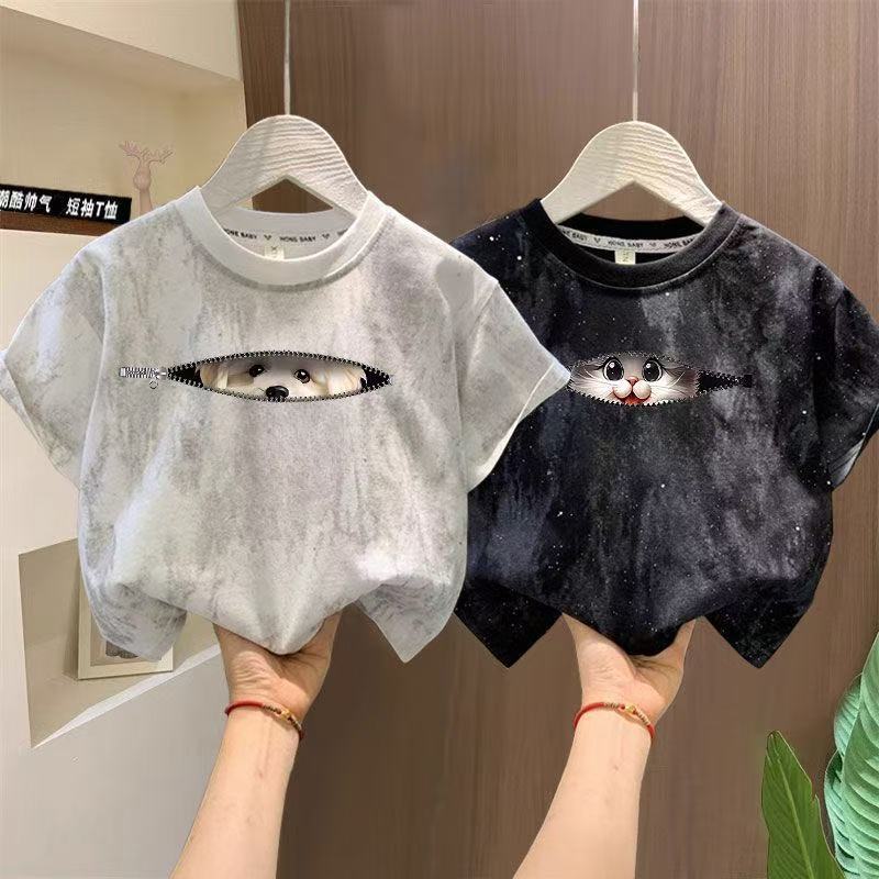 남아용 순면 반팔 티셔츠 여름 신작 스타일 다재다능한 반팔 탑 중대형 아동용 트렌디한 타이 염색 트렌디 티셔츠스토어 가기