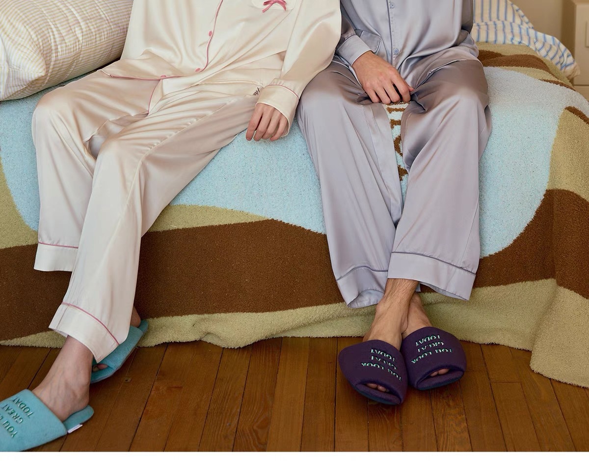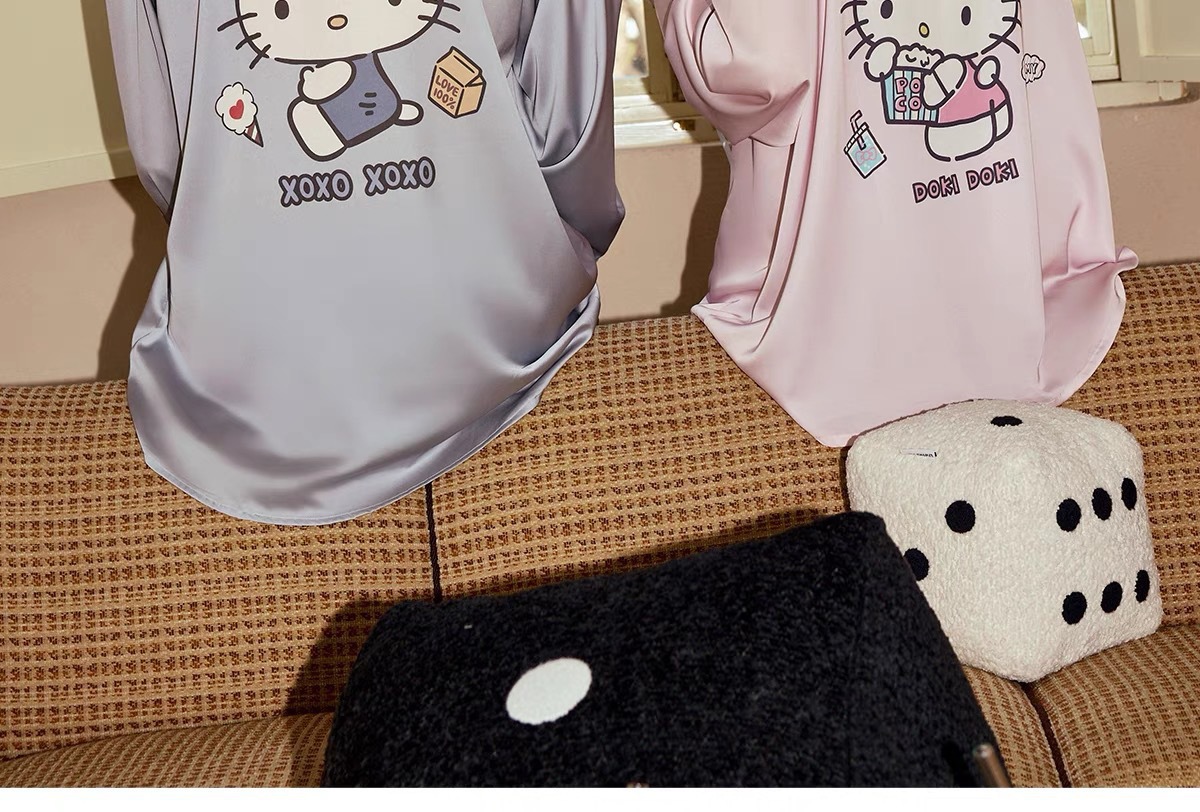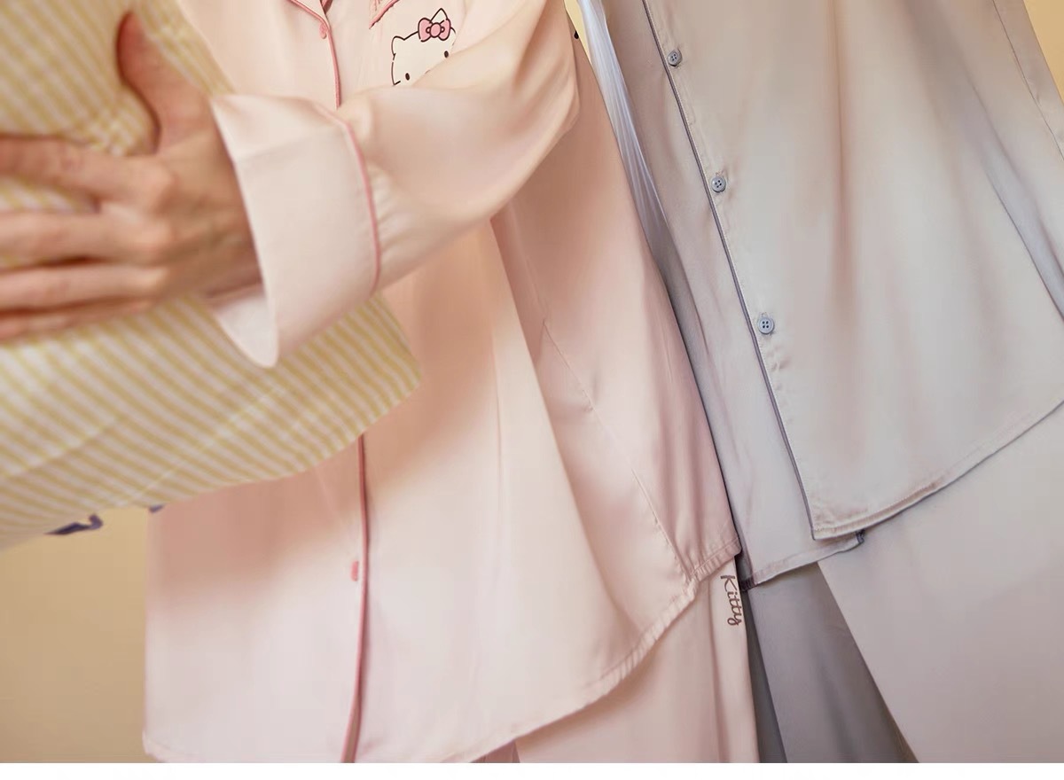 2025 Nutshell 같은 스타일 커플 잠옷 봄 새로운 긴팔 얼음과 얼음 실크 느슨한 양복은 여성을위한 가정복으로 착용 가능스토어 가기