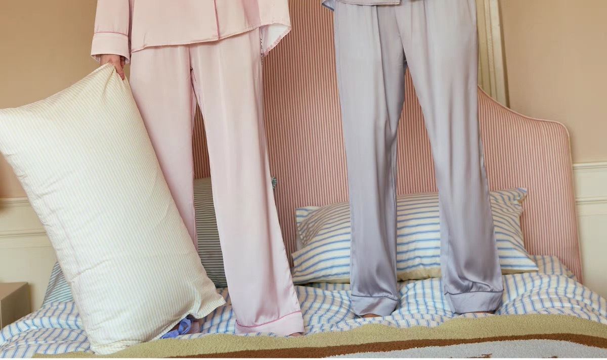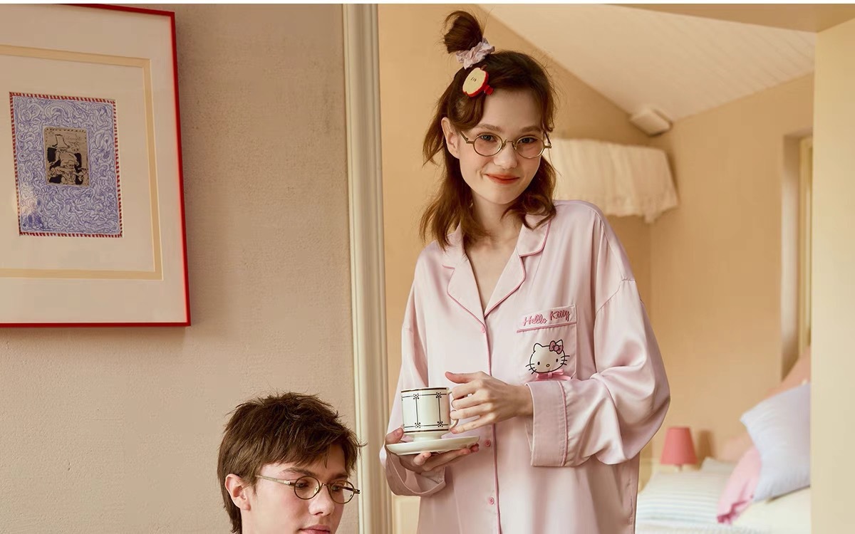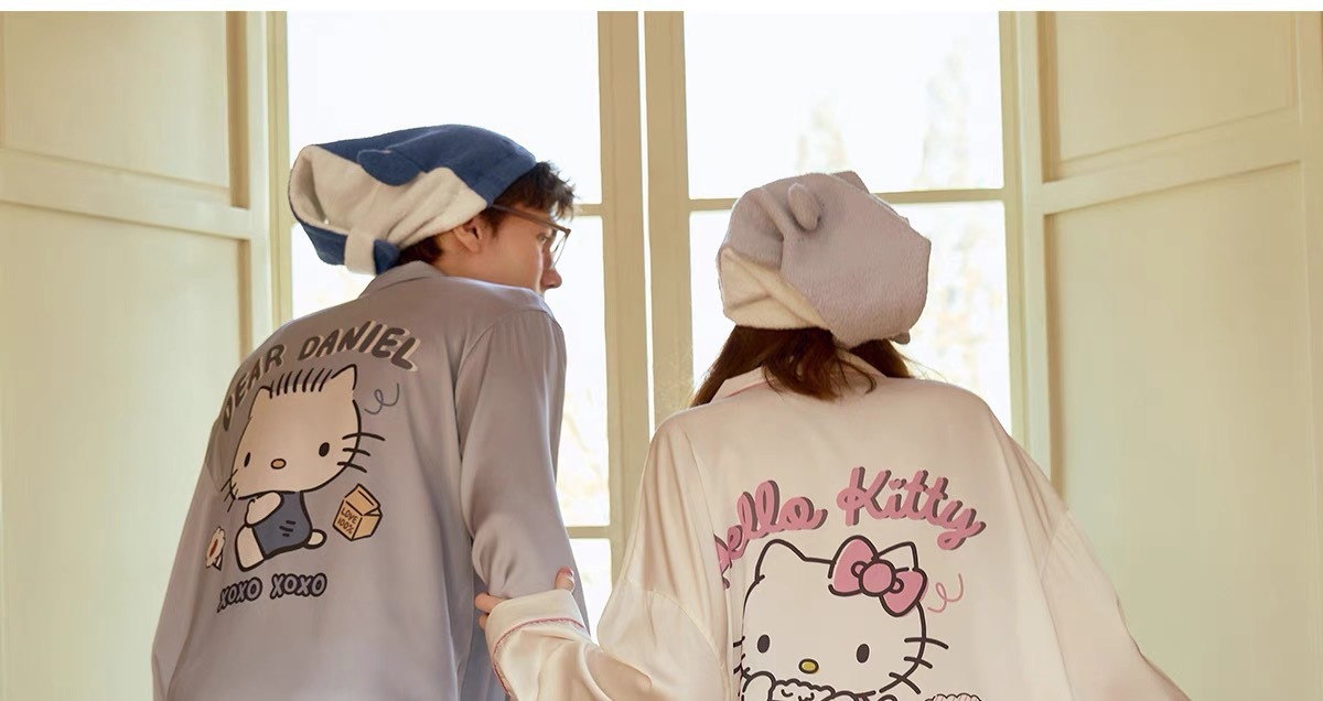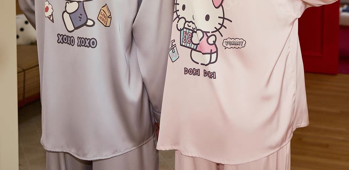 2025 Nutshell 같은 스타일 커플 잠옷 봄 새로운 긴팔 얼음과 얼음 실크 느슨한 양복은 여성을위한 가정복으로 착용 가능스토어 가기