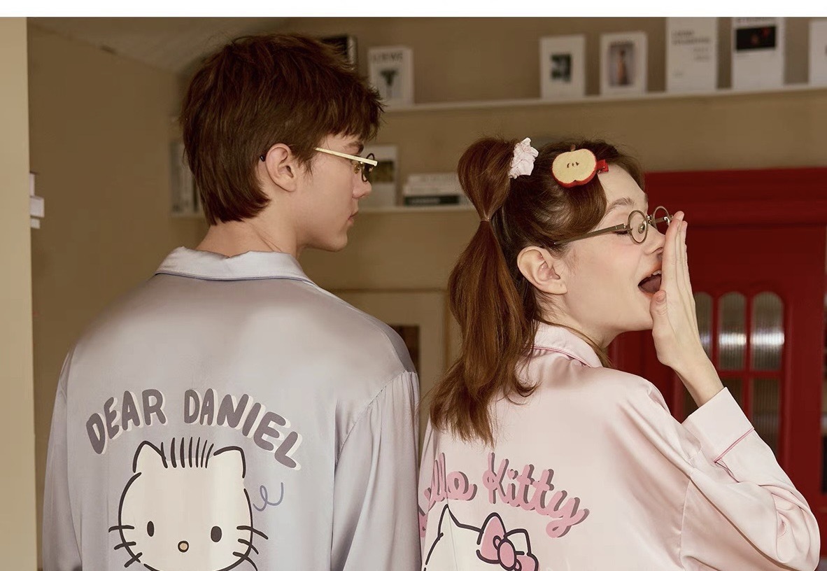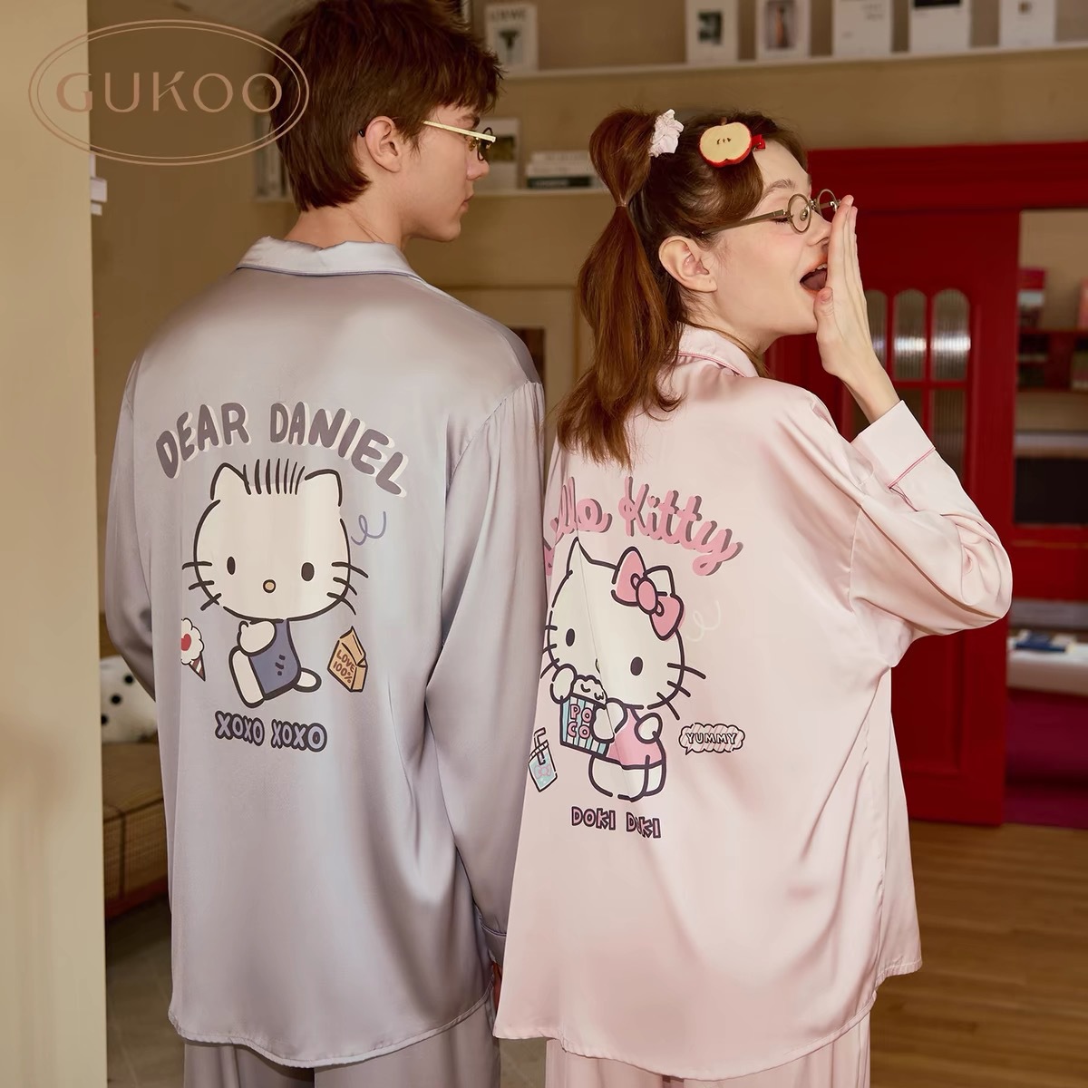 2025 Nutshell 같은 스타일 커플 잠옷 봄 새로운 긴팔 얼음과 얼음 실크 느슨한 양복은 여성을위한 가정복으로 착용 가능