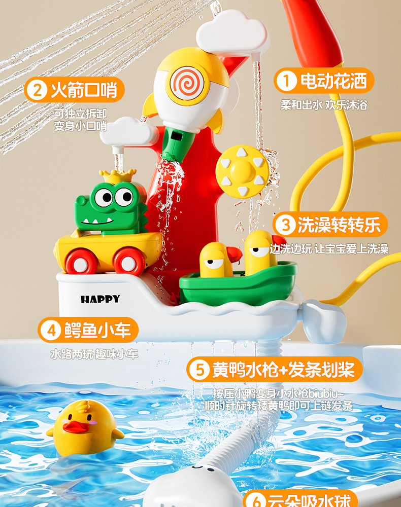 어린이 목욕 샤워기, 아기 다기능 회전식 전동 물놀이 장난감, 물 분사 목욕용품, 물놀이 욕조스토어 가기