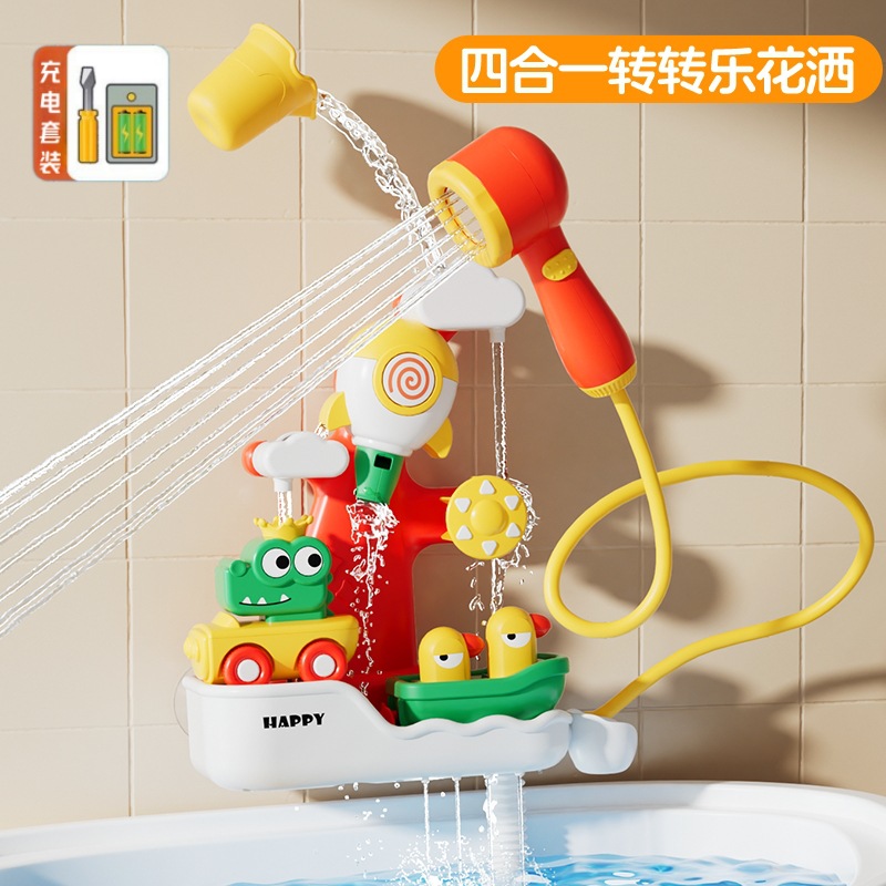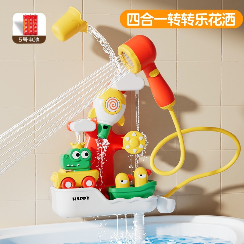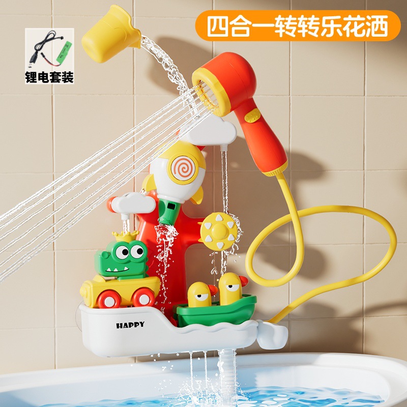 어린이 목욕 샤워기, 아기 다기능 회전식 전동 물놀이 장난감, 물 분사 목욕용품, 물놀이 욕조