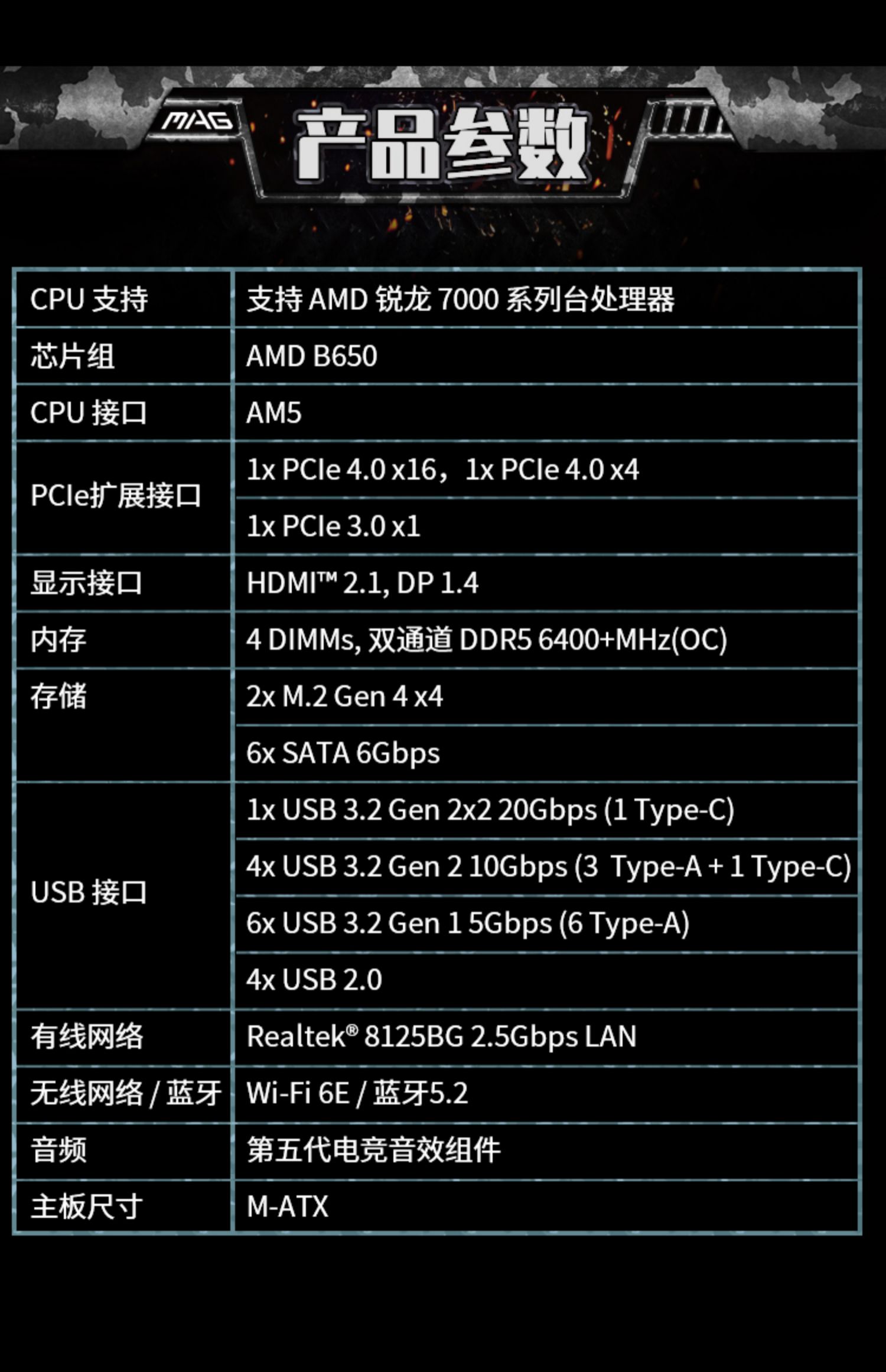 CPU AM5 7600X/7700X에 적합한 MSI MAG B650M MORTAR WIFI 컴퓨터 PC 마더보드