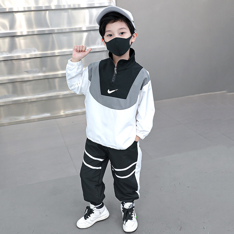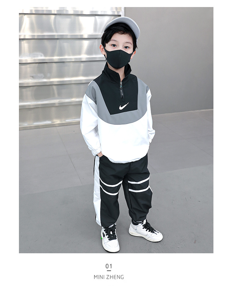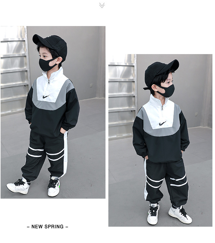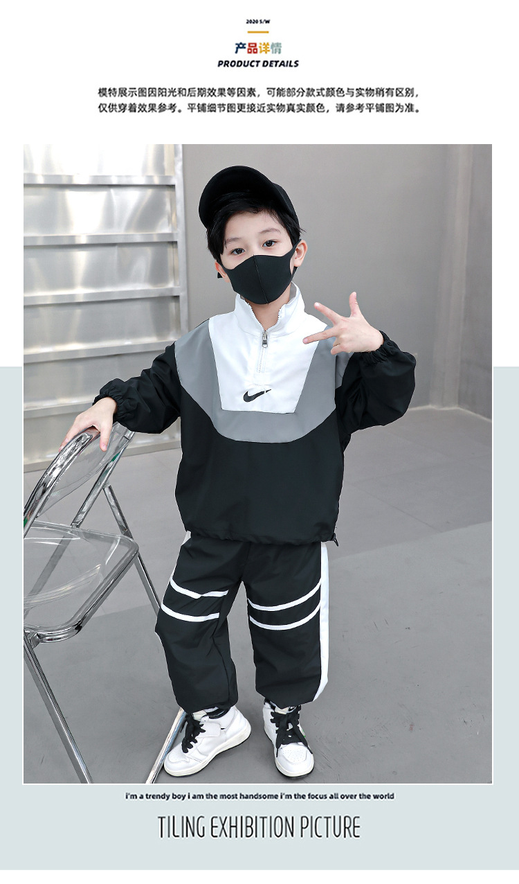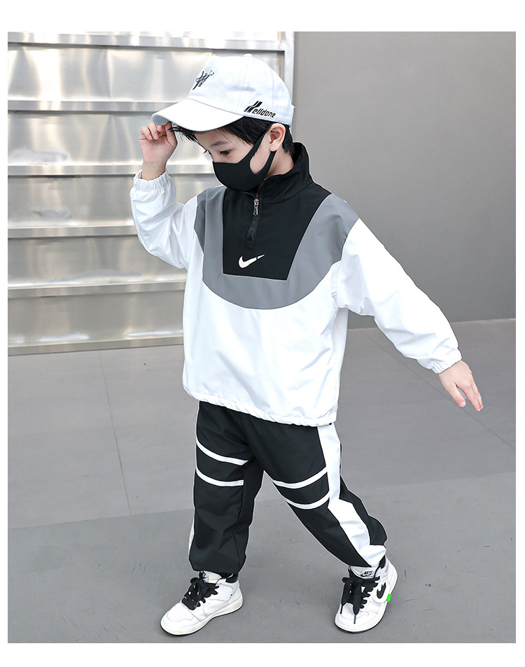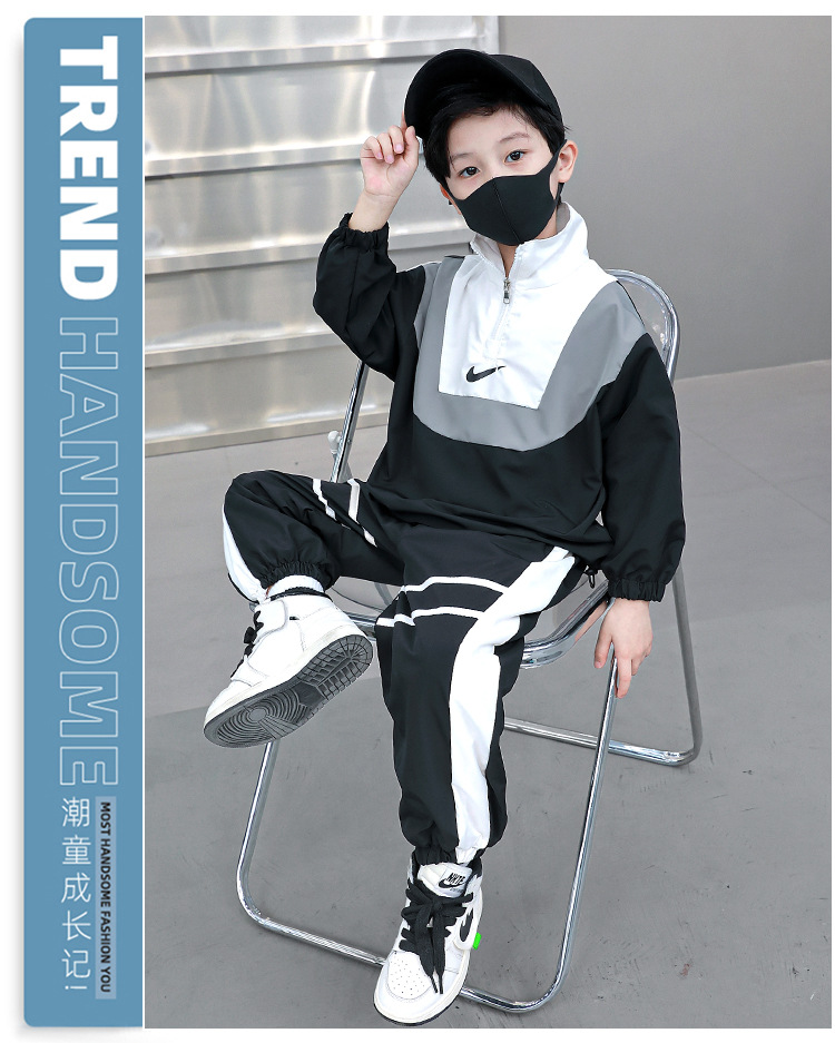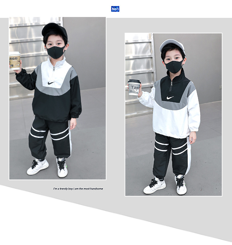 소년 봄, 가을 인터넷 연예인 잘 생긴 양복 2025 새로운 스타일 중소 어린이 컬러 블록 브로큰 후크 긴팔 스포츠 투피스 세트 도매스토어 가기