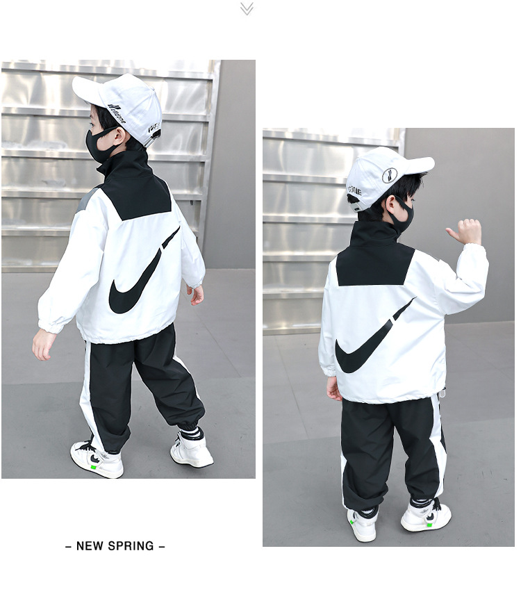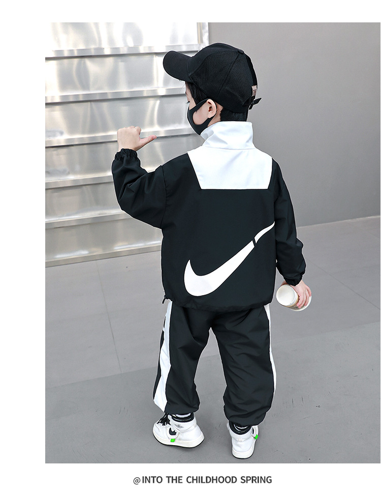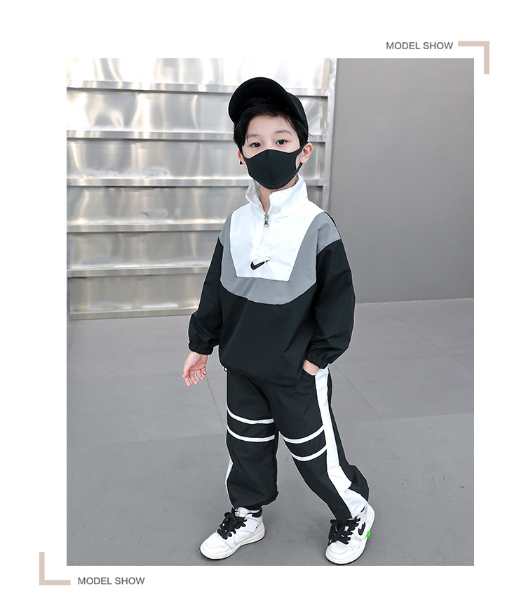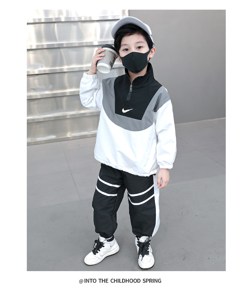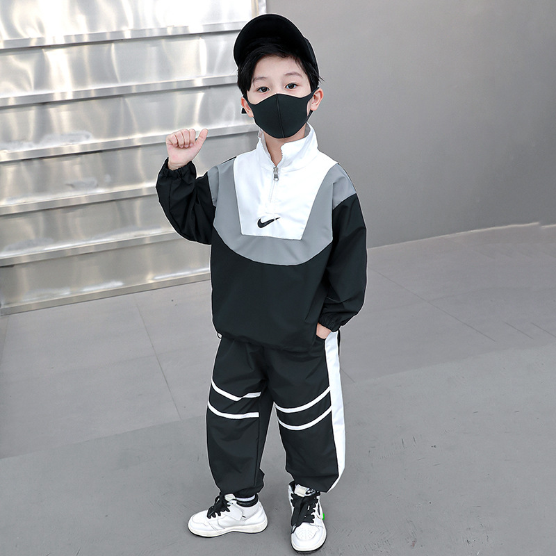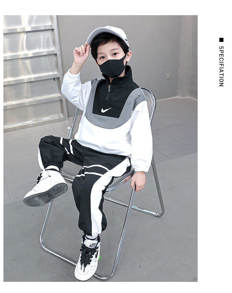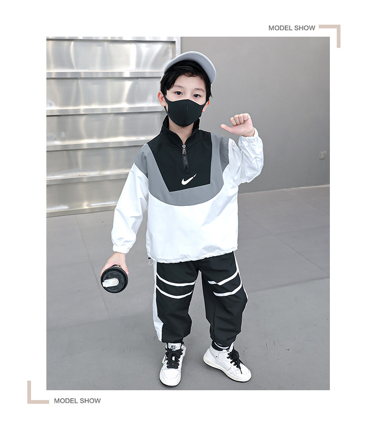 소년 봄, 가을 인터넷 연예인 잘 생긴 양복 2025 새로운 스타일 중소 어린이 컬러 블록 브로큰 후크 긴팔 스포츠 투피스 세트 도매스토어 가기