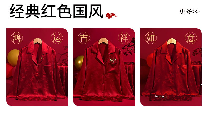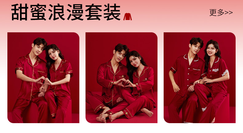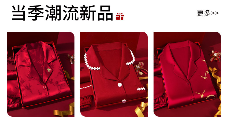 [Centennial Haili] 웨딩 레드 아이스 실크 잠옷 여름 슈트 통기성이 좋고 편안하며 고급스러운 커플 홈웨어스토어 가기