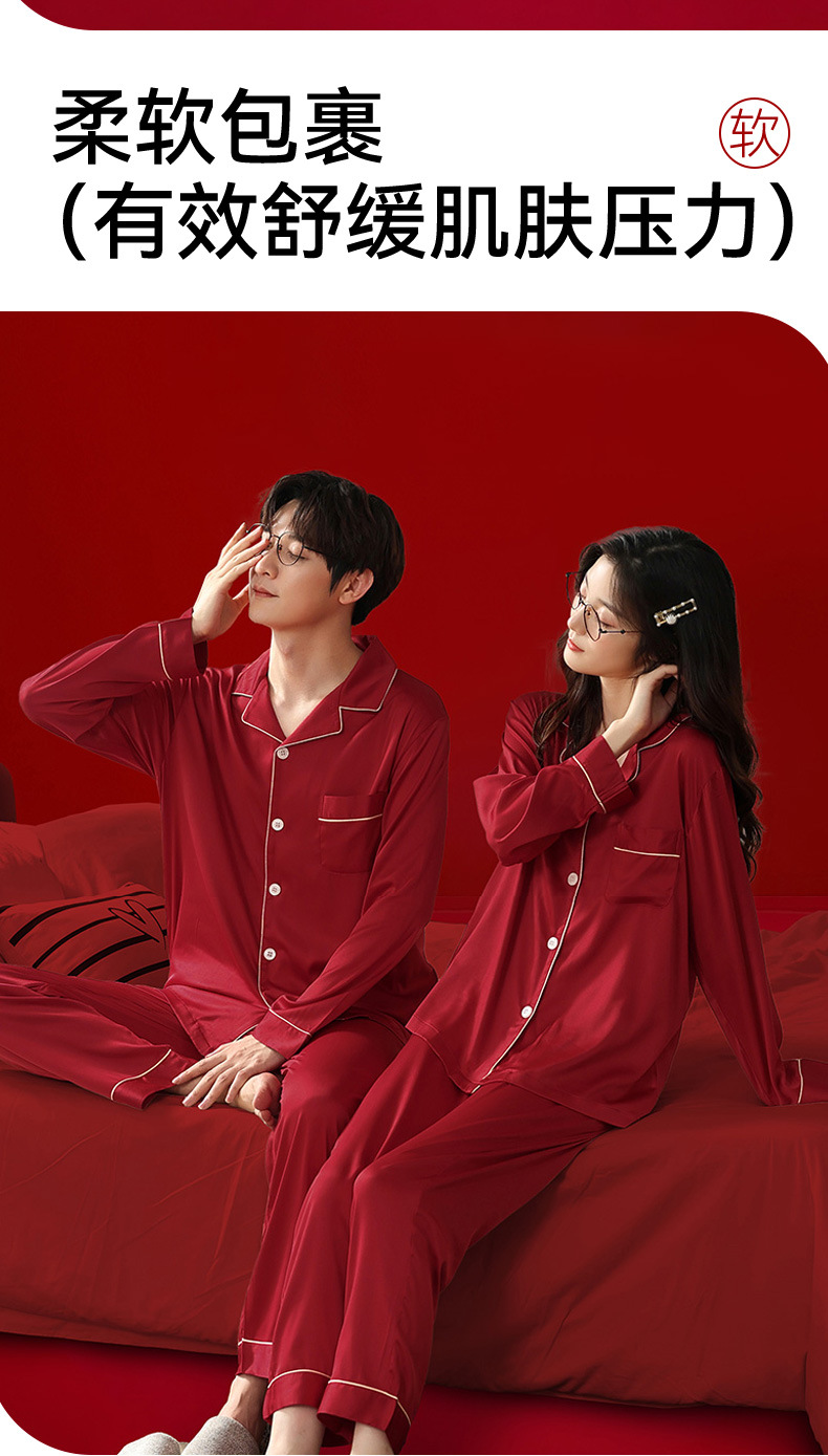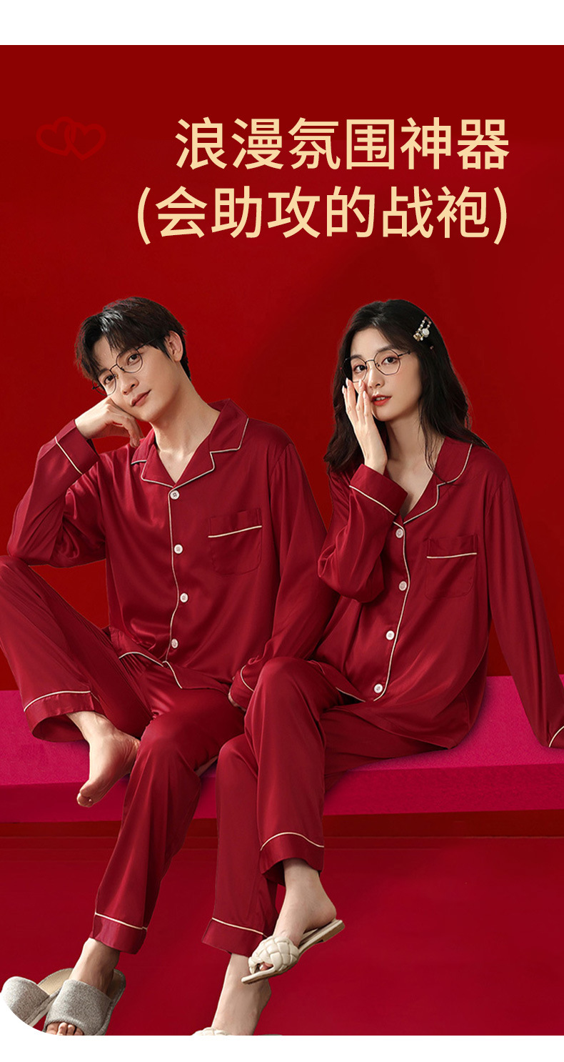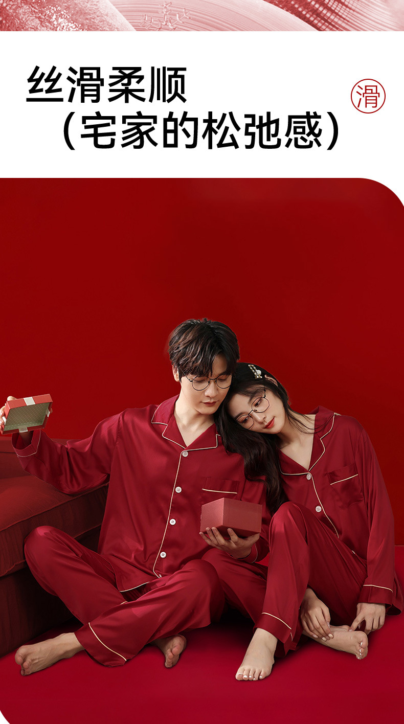 [Centennial Haili] 웨딩 레드 아이스 실크 잠옷 여름 슈트 통기성이 좋고 편안하며 고급스러운 커플 홈웨어