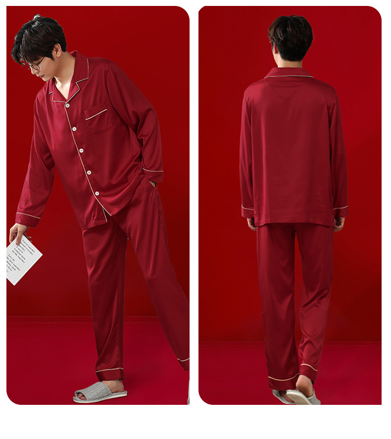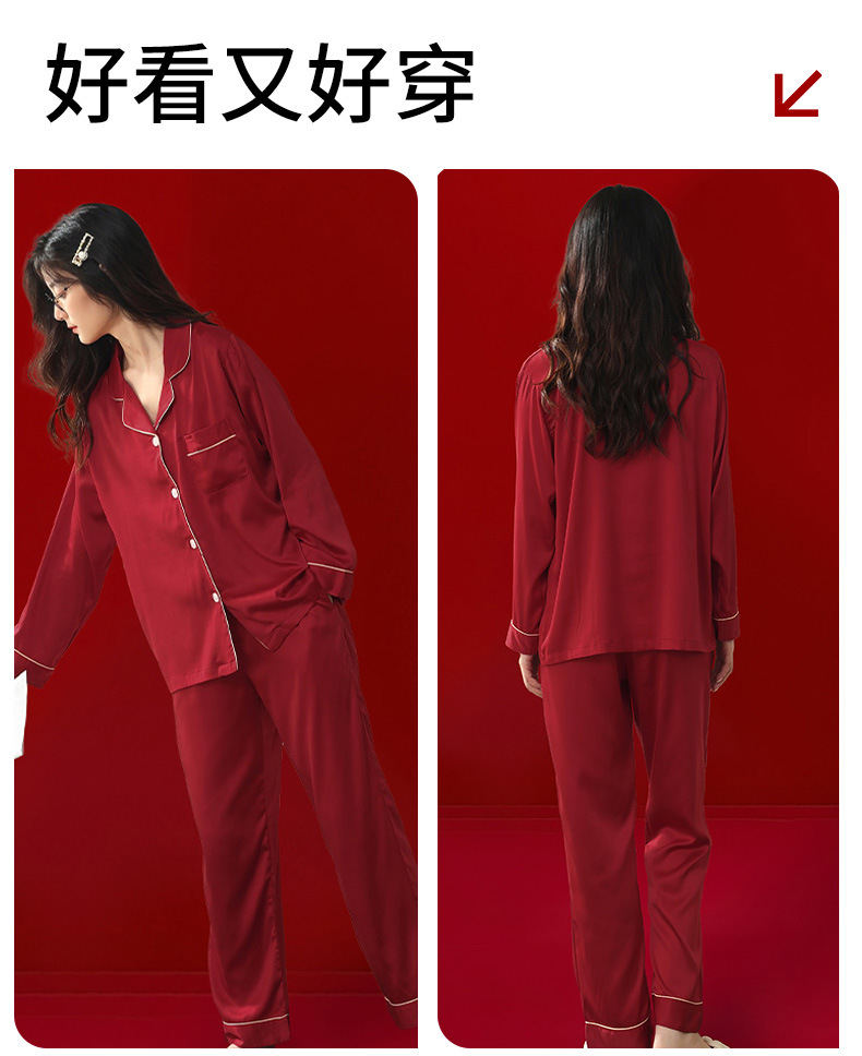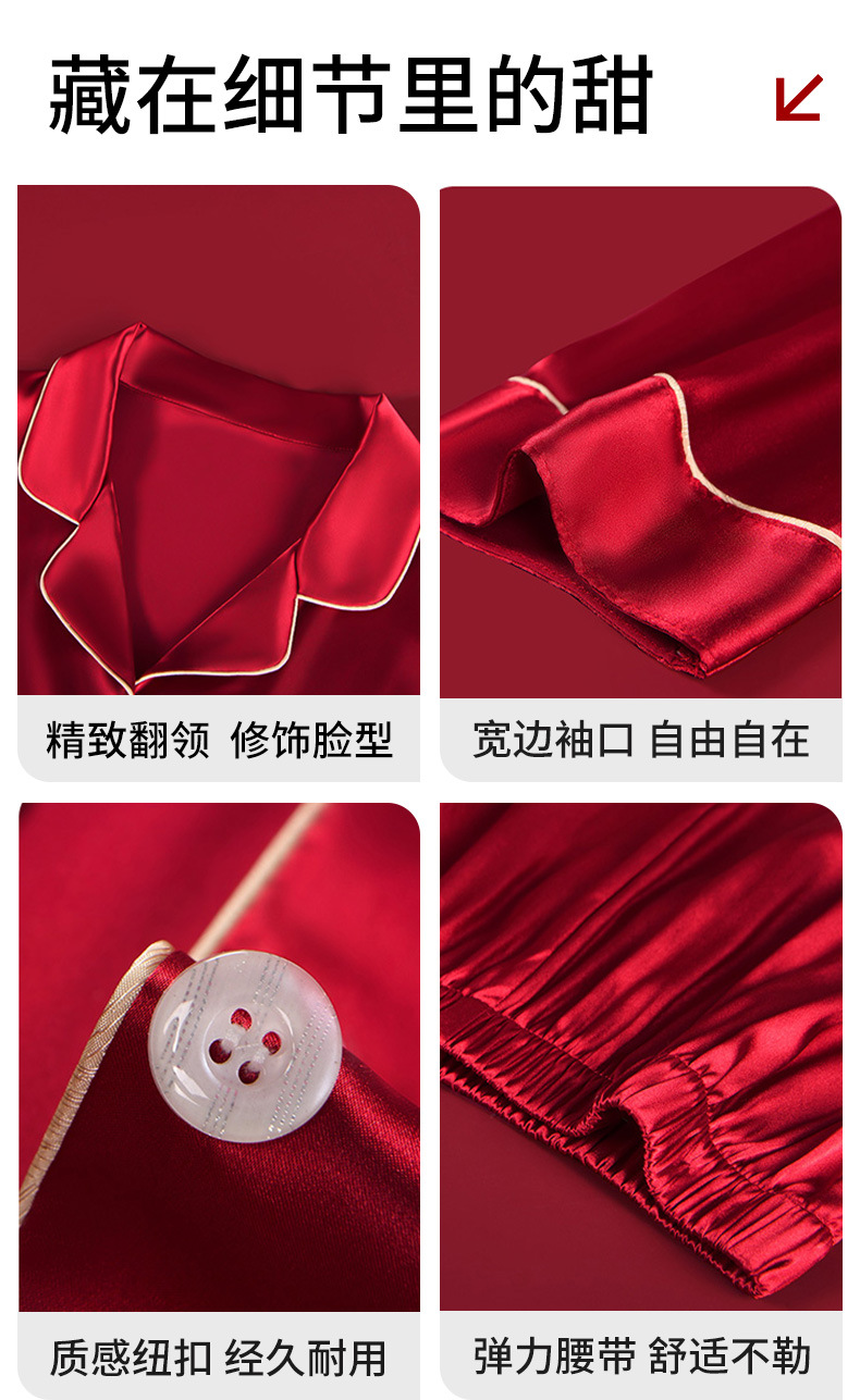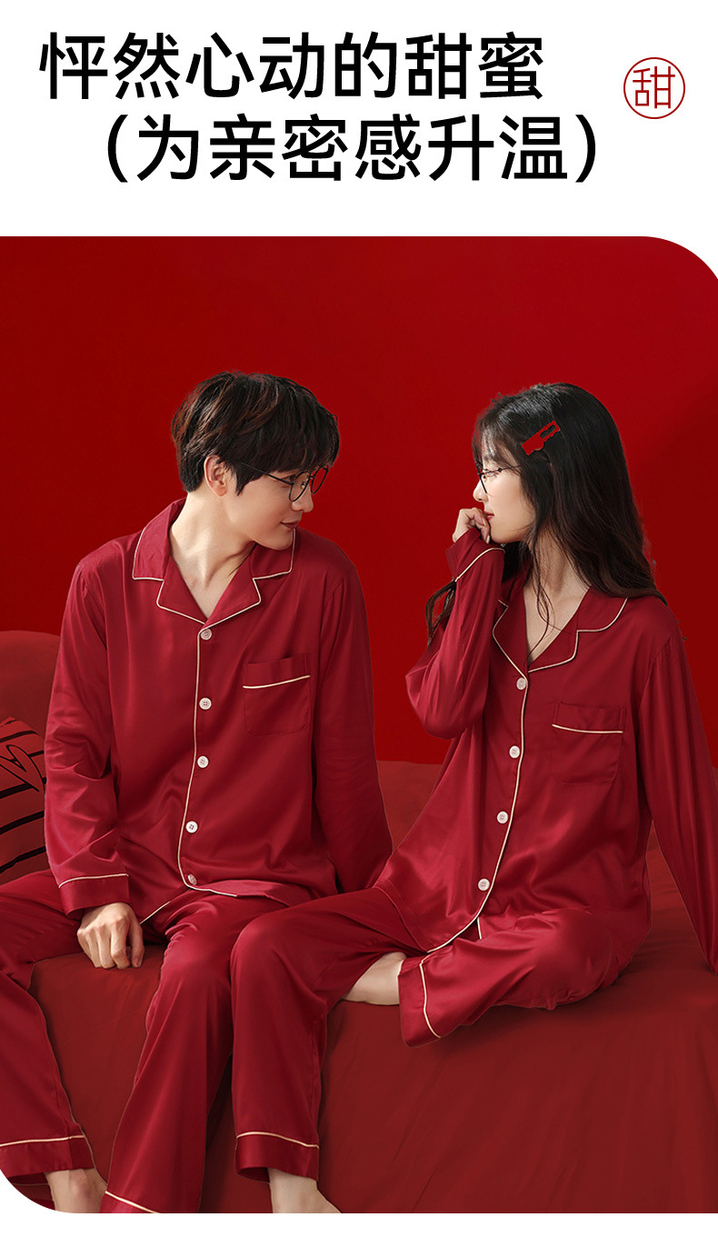 [Centennial Haili] 웨딩 레드 아이스 실크 잠옷 여름 슈트 통기성이 좋고 편안하며 고급스러운 커플 홈웨어