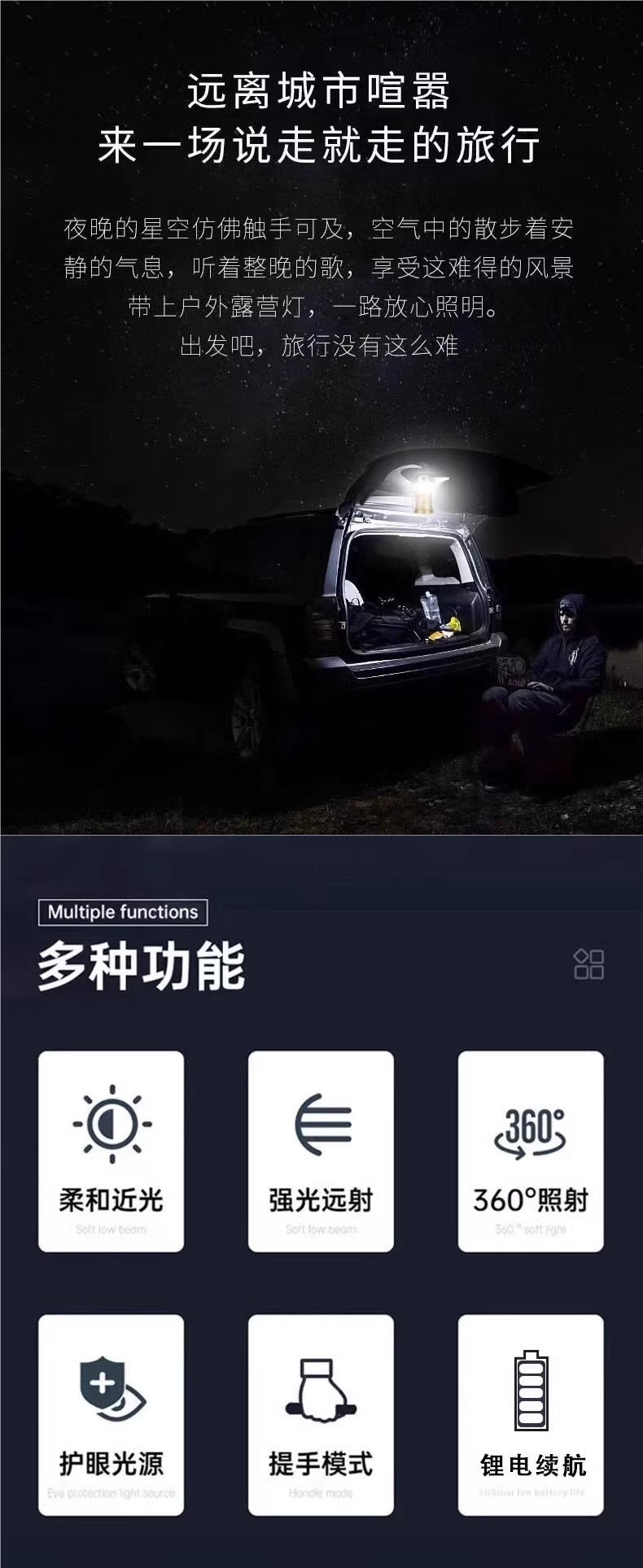 • [36000K 고휘도] 골든 듀얼 광원 + 태양광 + 라인 충전 겸용, 120일 대기