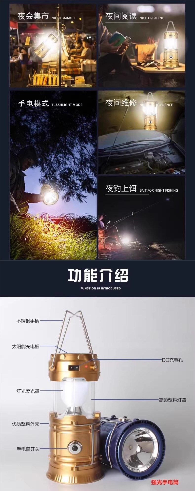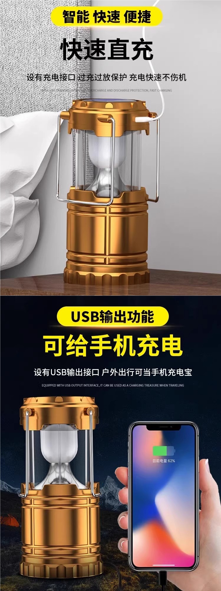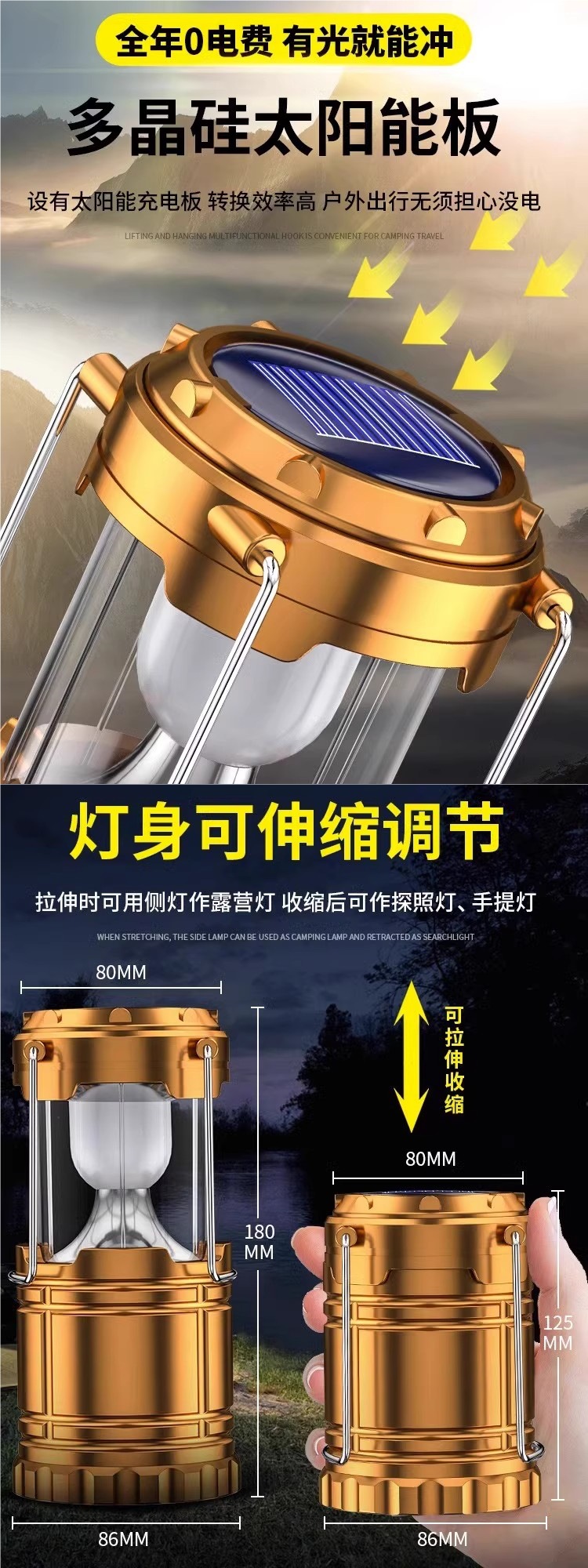 • [78000K 슈퍼 브라이트] 골든 듀얼 광원 + 태양광 + 라인 충전 겸용, 520일 대기