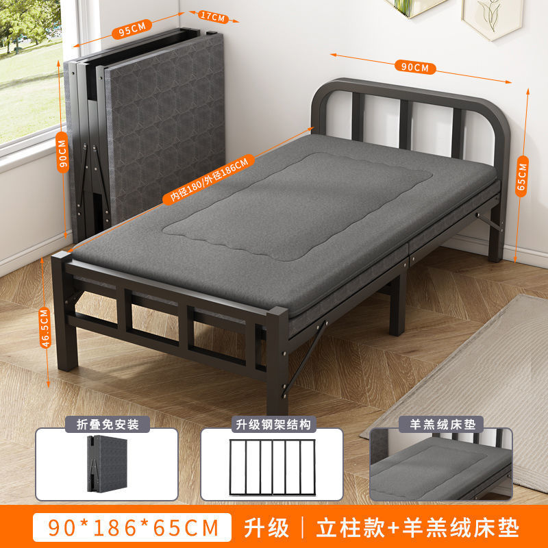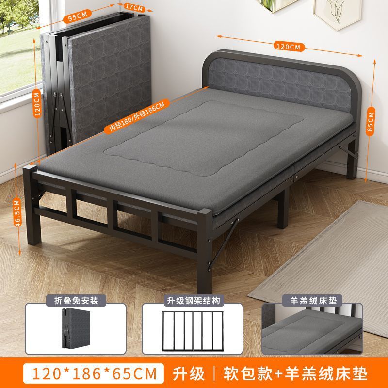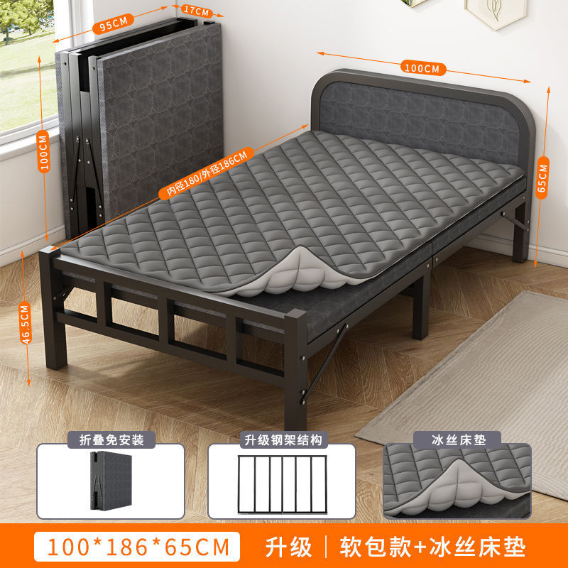 접이식 침대 접이식 싱글 침대 성인 간이 낮잠 철제 침대 가정용 휴대용 사무실 기숙사 임대 집 낮잠
