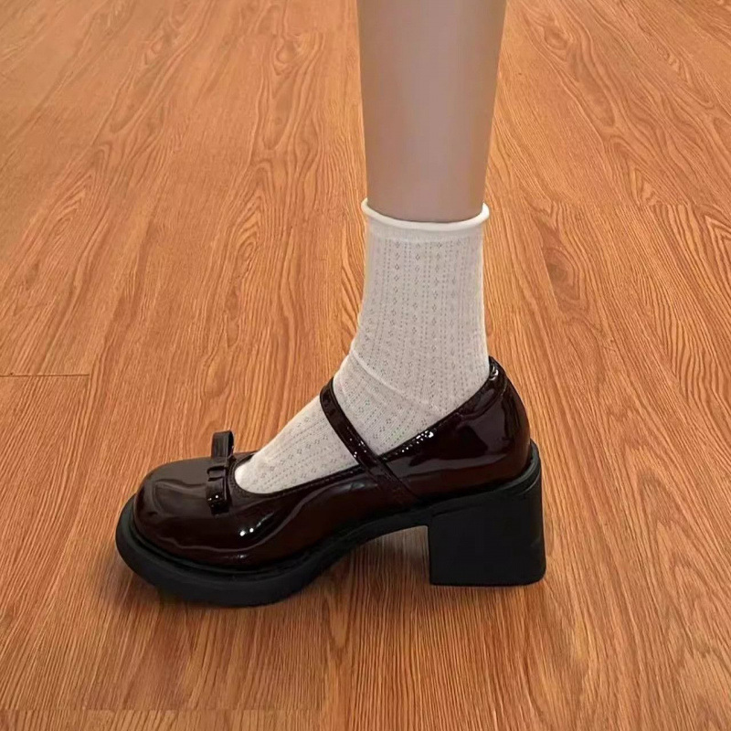 브라운 jk 영국 스타일 작은 가죽 신발 프랑스 복고풍 일본 메리 제인 신발 여성 로리타 틈새 나비 매듭 여성 신발