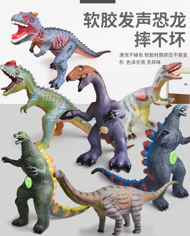 거대한 시뮬레이션 부드러운 고무 공룡 장난감 티라노사우루스 트리케라톱스 동물 모델 초대형 플라스틱 부드러운 어린이 아기스토어 가기