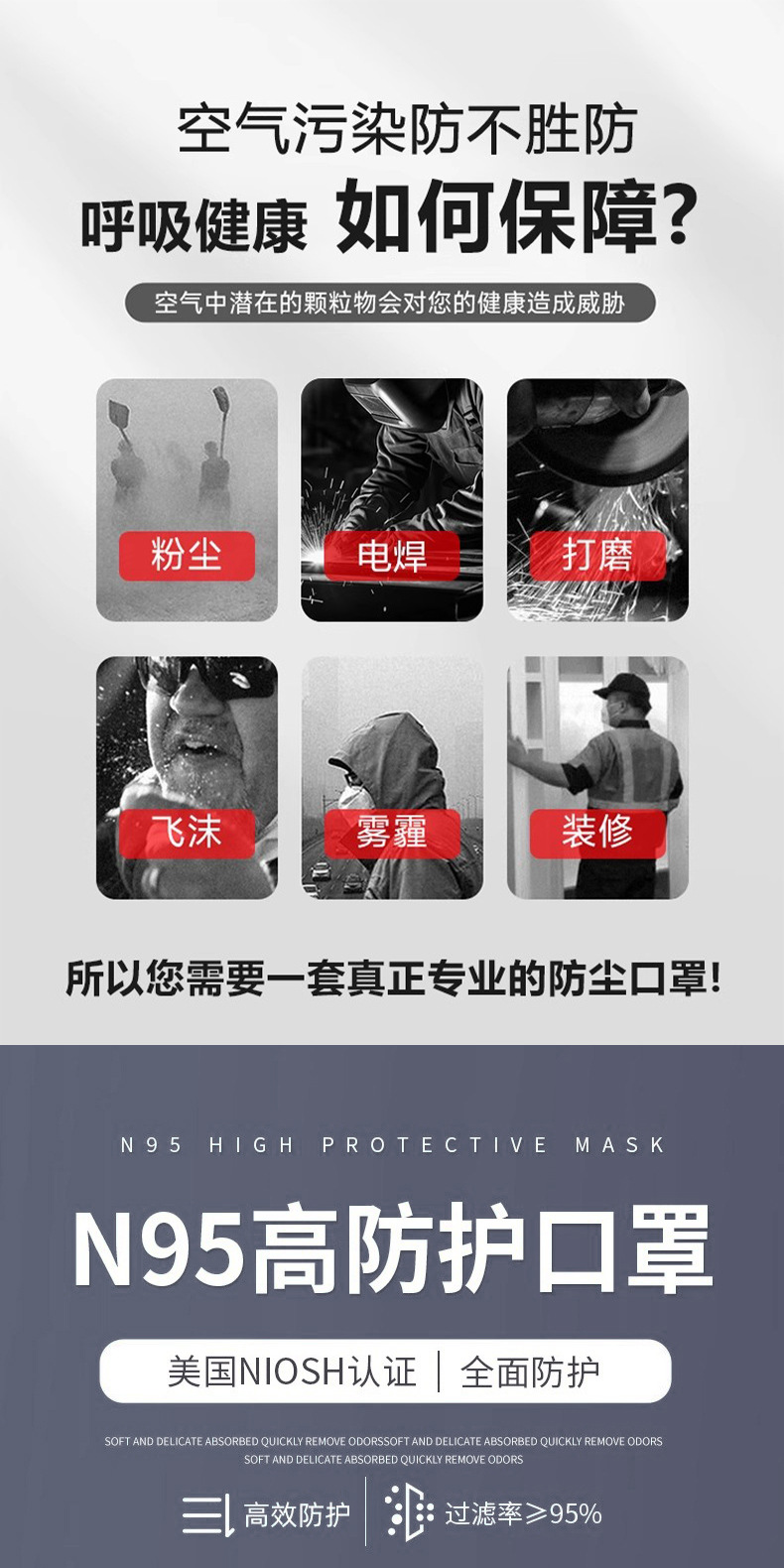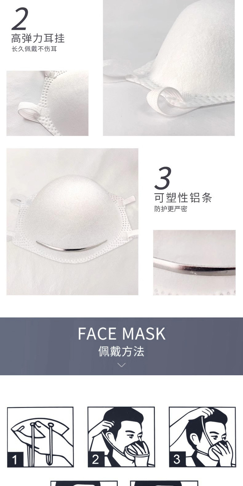 N95 산업용 일회용 보호 마스크 수출 영어 포장 3Q100SB 모델 NIOSH 인증