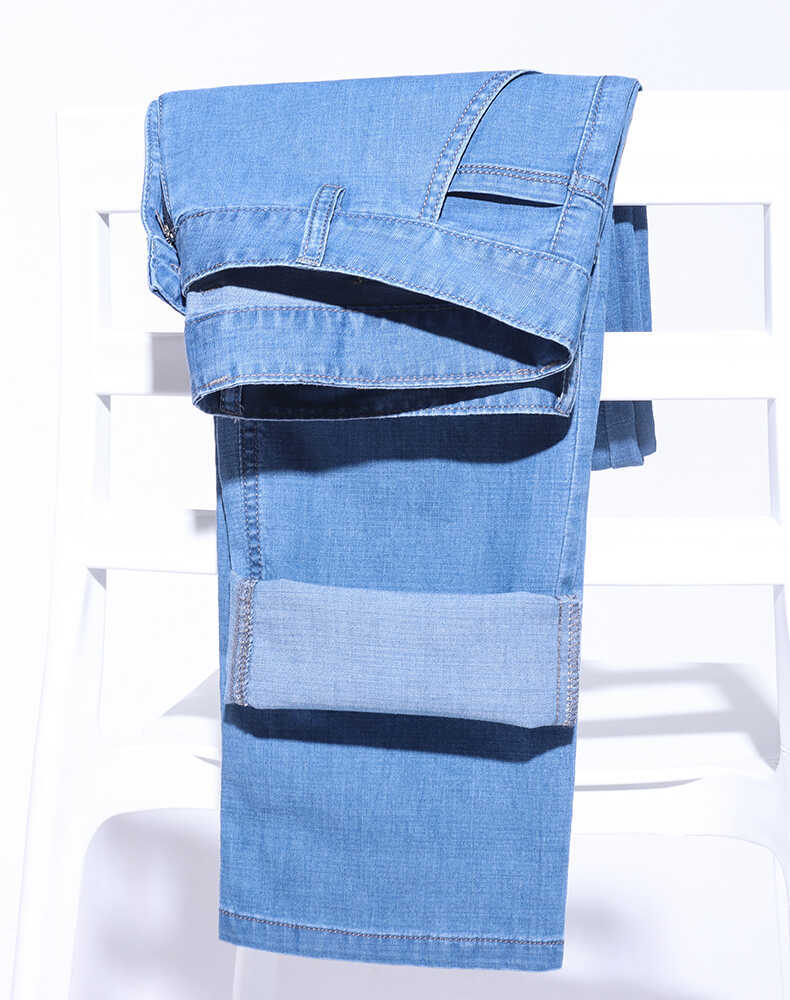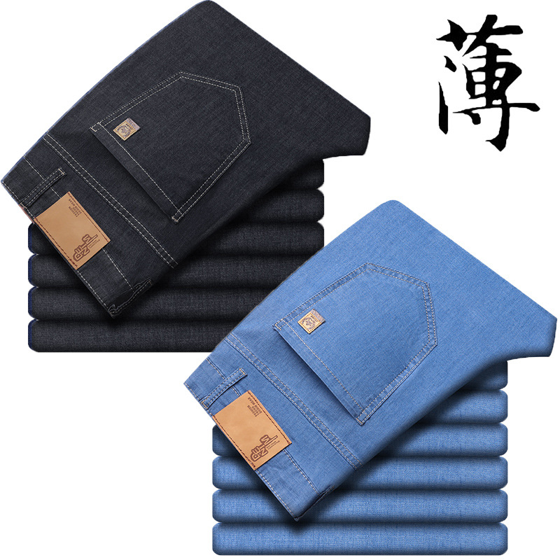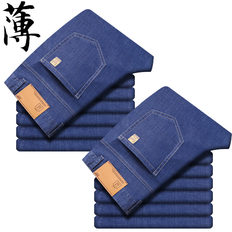 남성 청바지 스트레치 캐주얼 여름 얇은 2025 새로운 느슨한 얼음 실크 초박형 남성 스트레이트 롱 바지 남성용스토어 가기