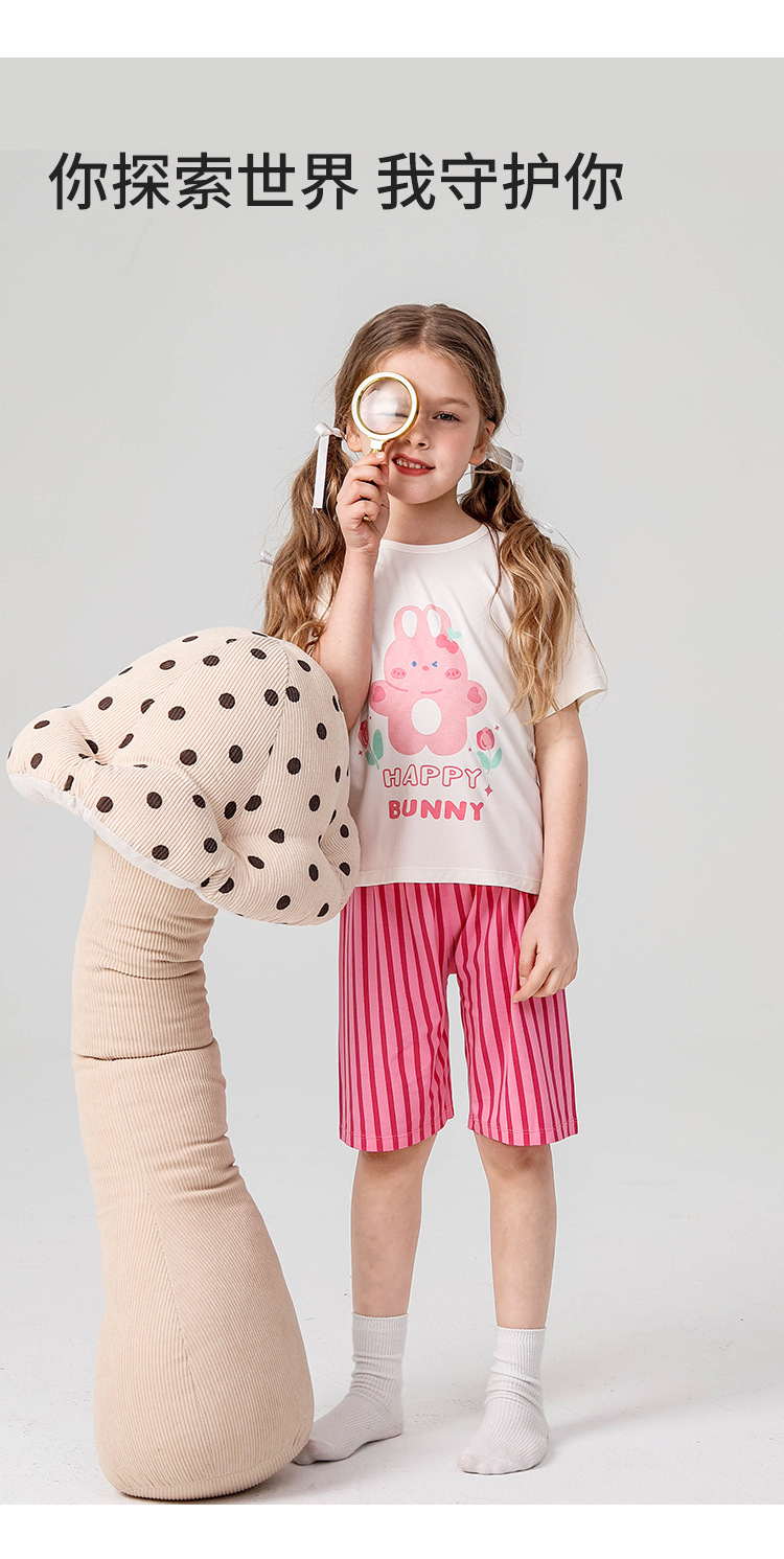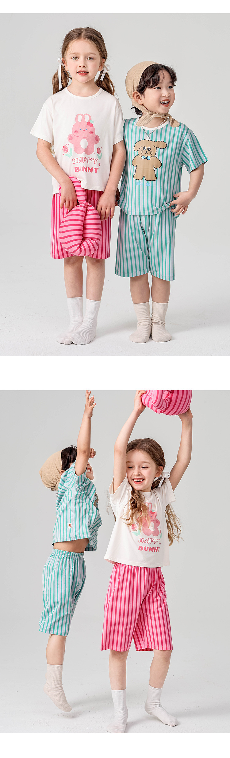 Yasael 아동복 ZYZ 디자이너 귀여운 토끼 반팔 양복 여름 소년 소녀 잠옷스토어 가기