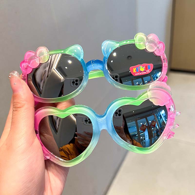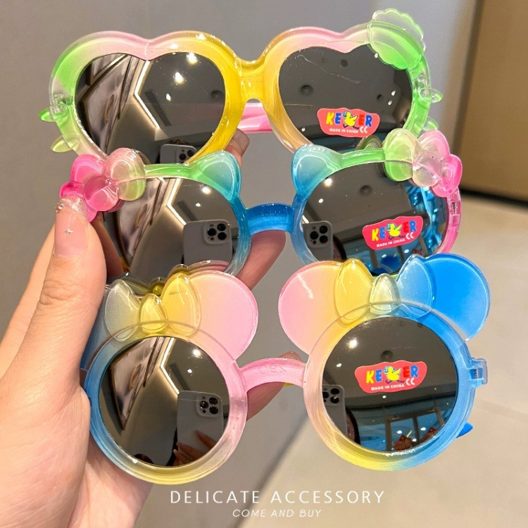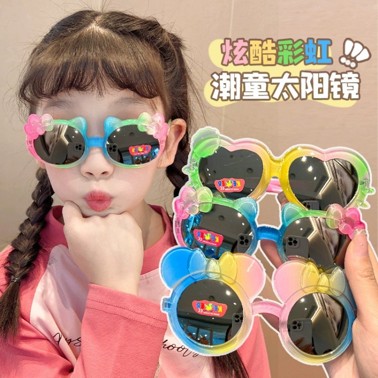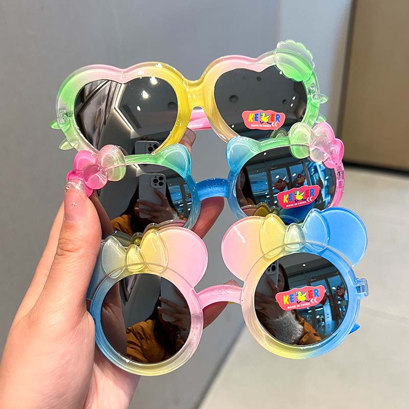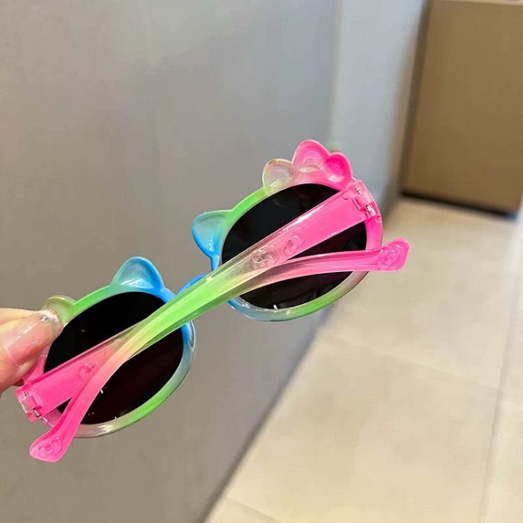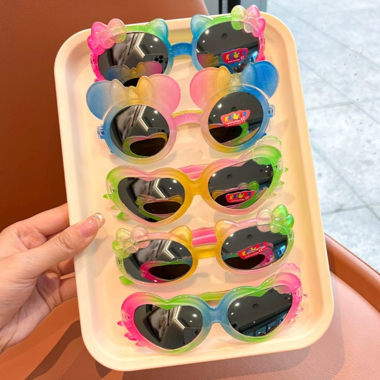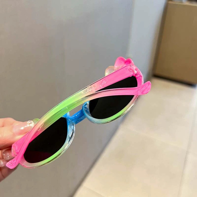 어린이 선글라스 귀여운 다채로운 그라데이션 만화 달콤하고 멋진 어린 소녀 야외 여행 태양 보호 선글라스스토어 가기