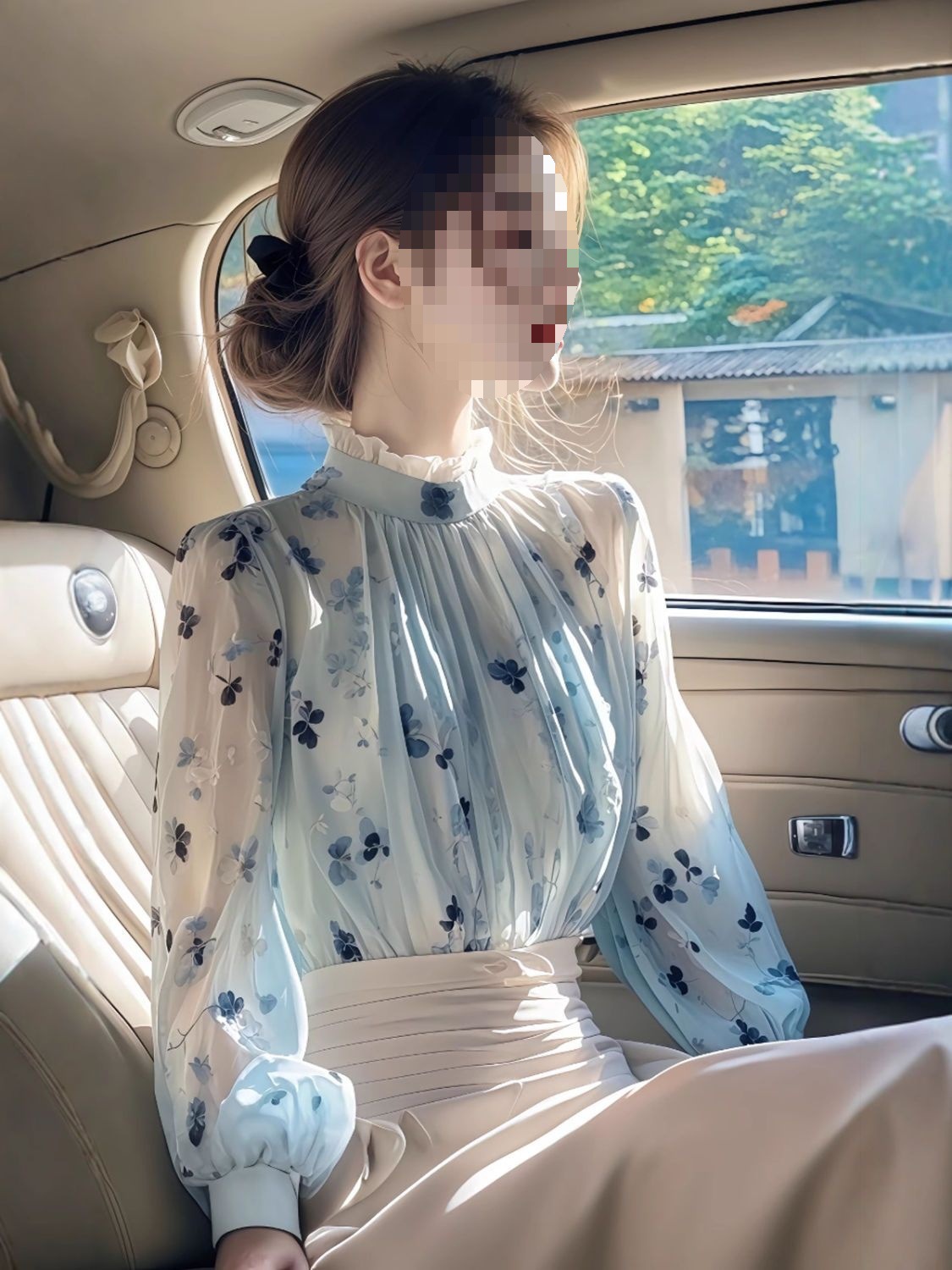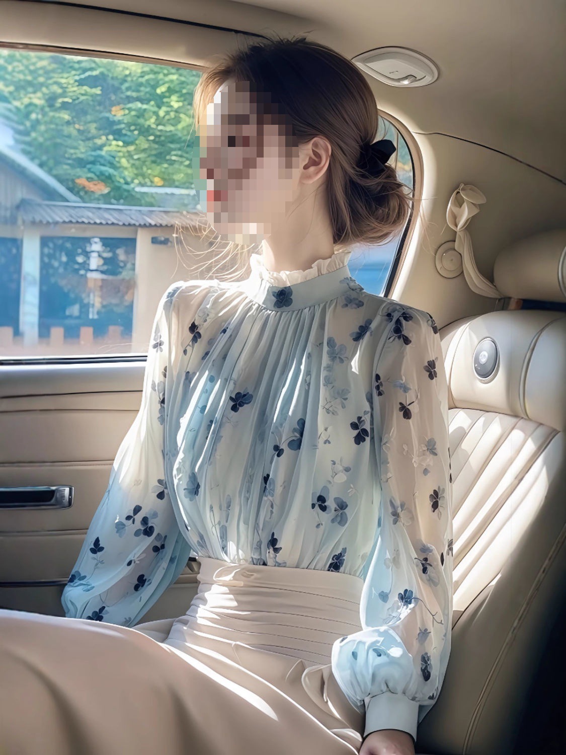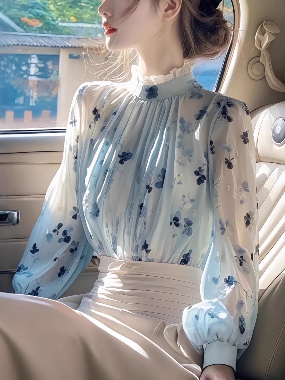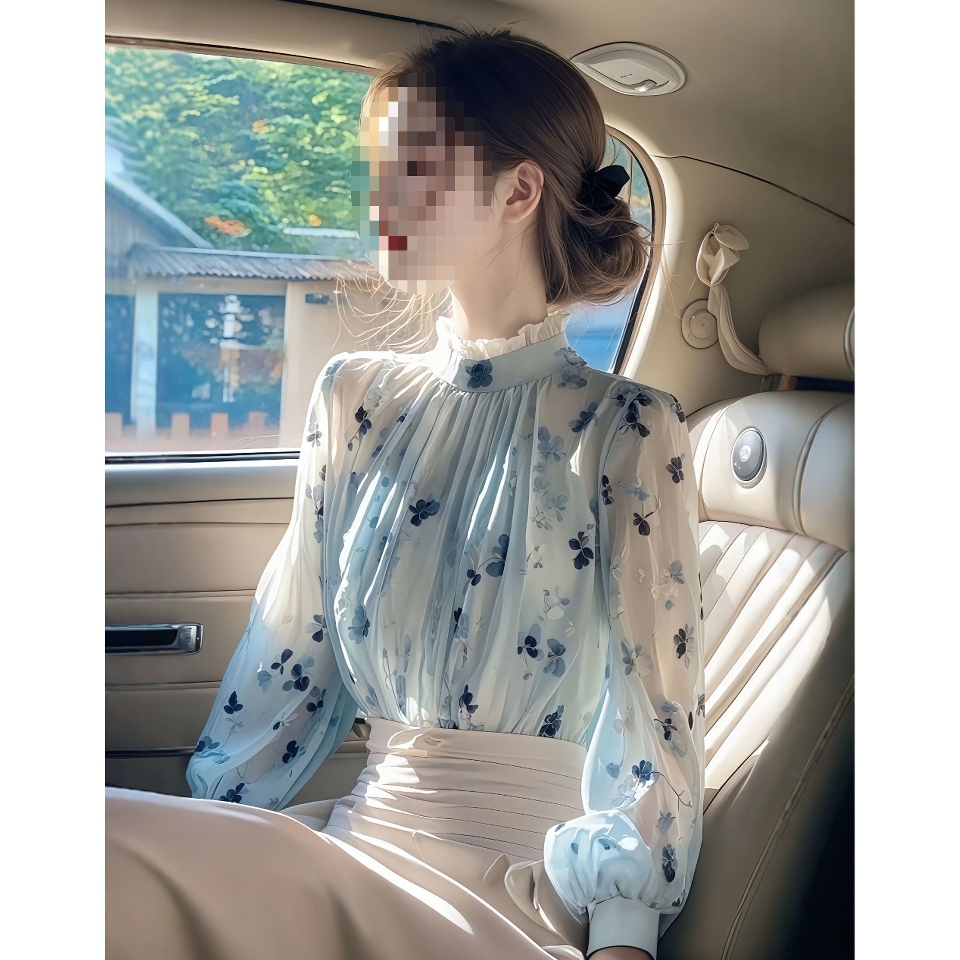 봄철 여성용 스탠드 칼라 꽃무늬 쉬폰 셔츠 플러스 사이즈 뚱뚱하고 날씬해 보이는 시크한 연령 감소 셔츠 탑