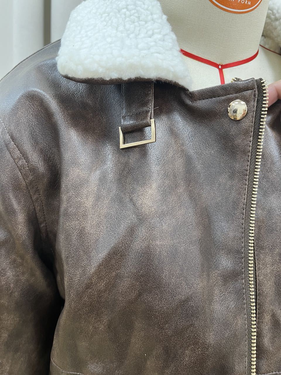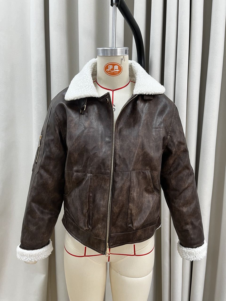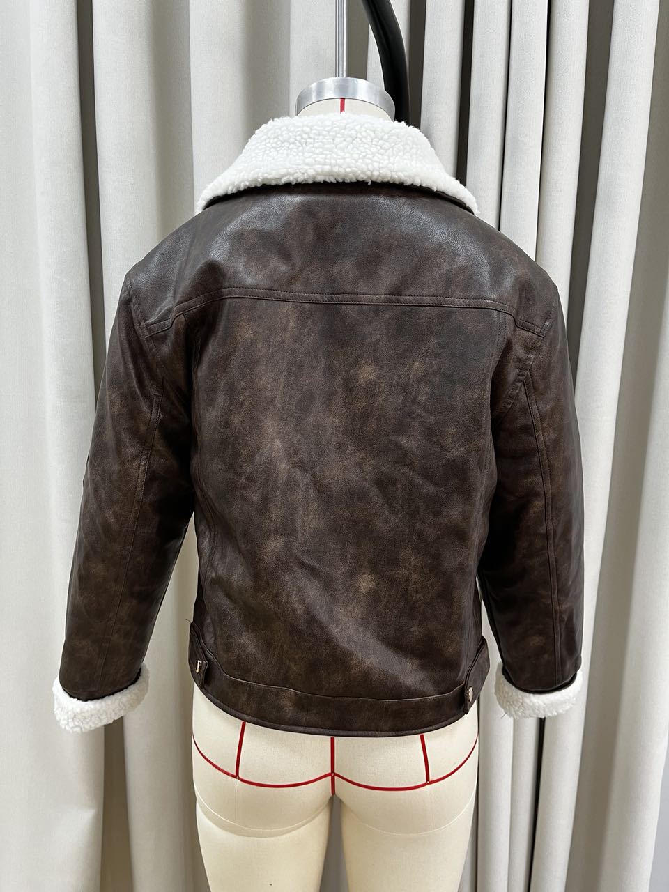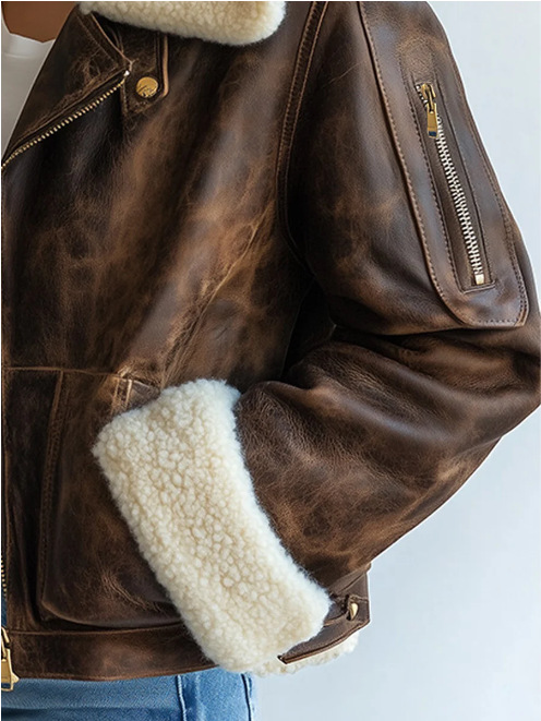 국경 간 대외 무역 여성 가을, 겨울 새로운 스타일 워시 PU 가죽 접합 양털 지퍼 장식 오토바이 재킷스토어 가기
