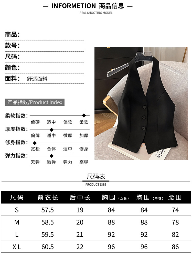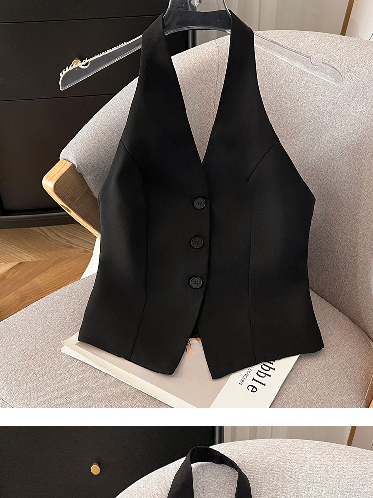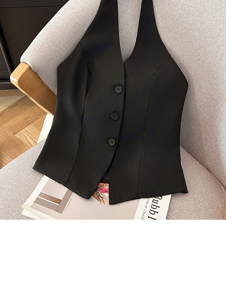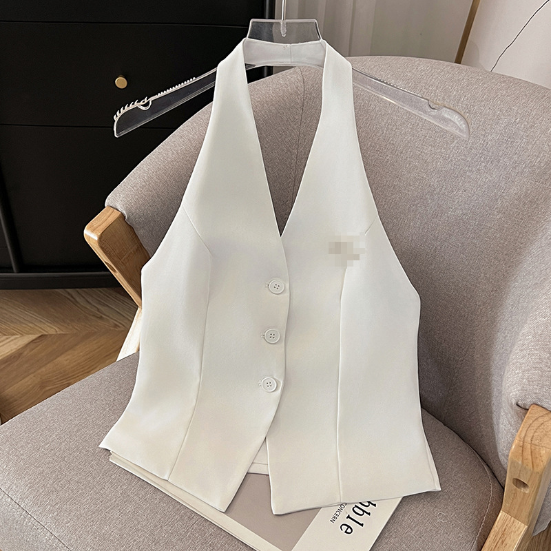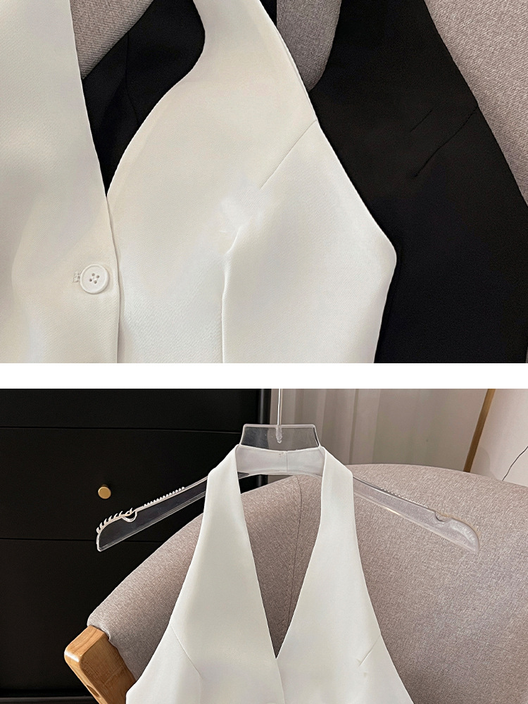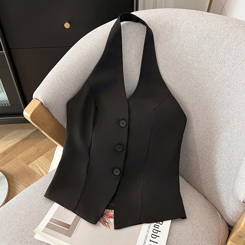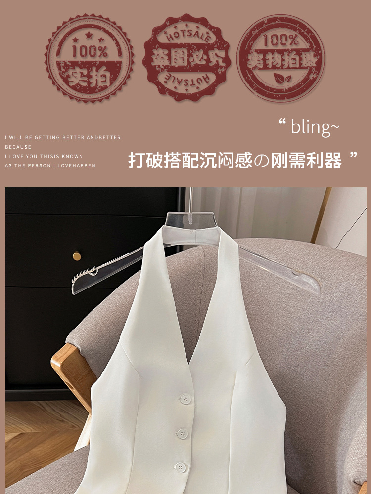 辣妹V领挂脖马甲女2024春季新款通勤轻熟风时髦轻奢高级感小西装