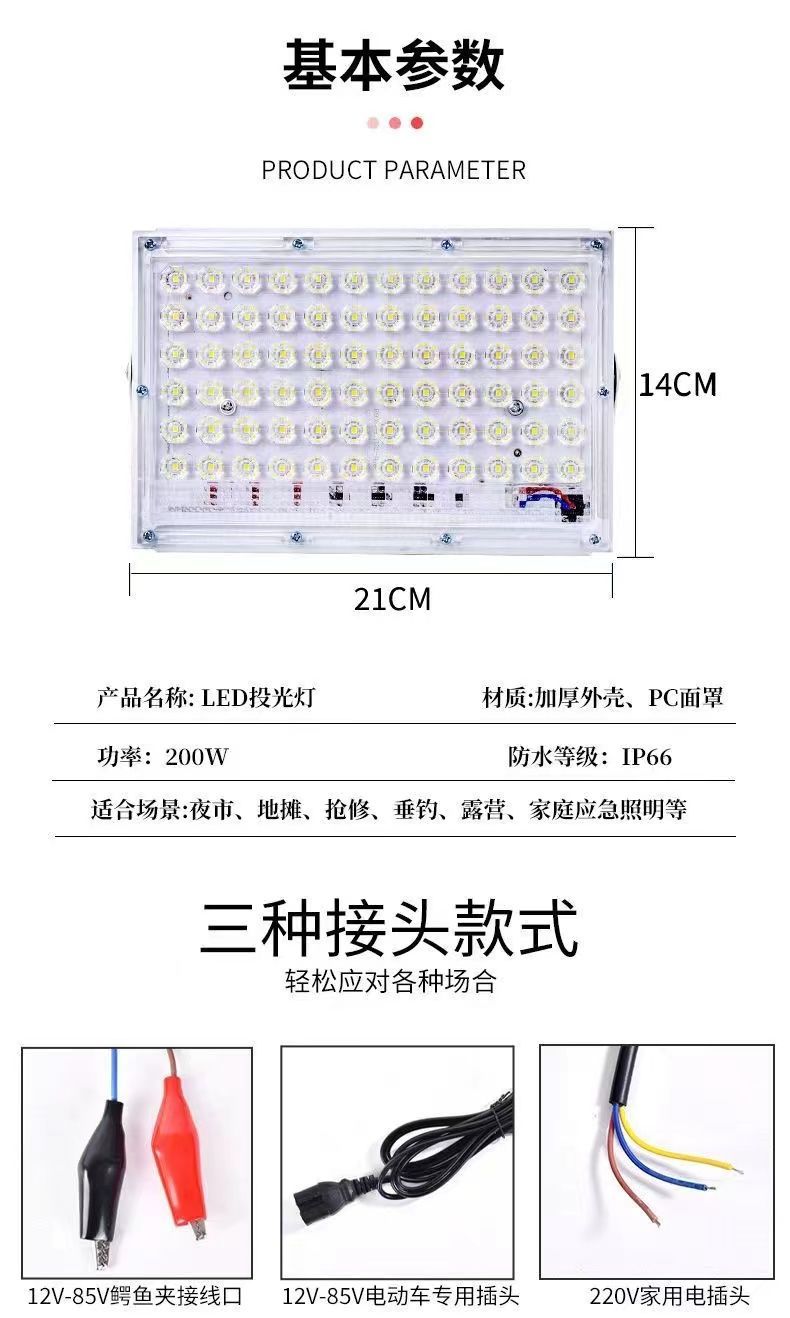 LED12V 배터리 자동차 사용 조명 저전압 야시장 노점 조명 배터리 클립 조명 DC 저전압 투광 조명