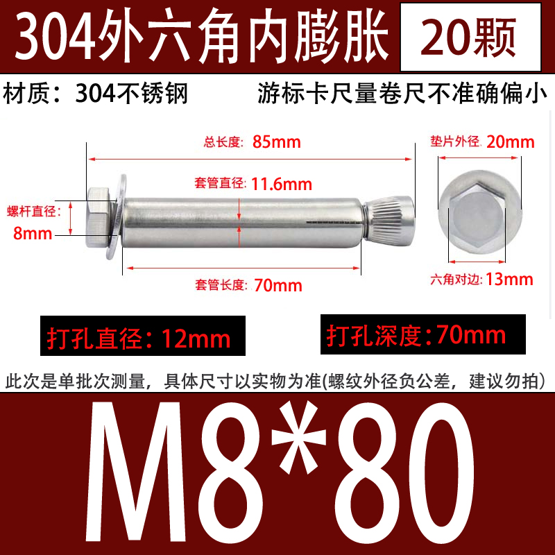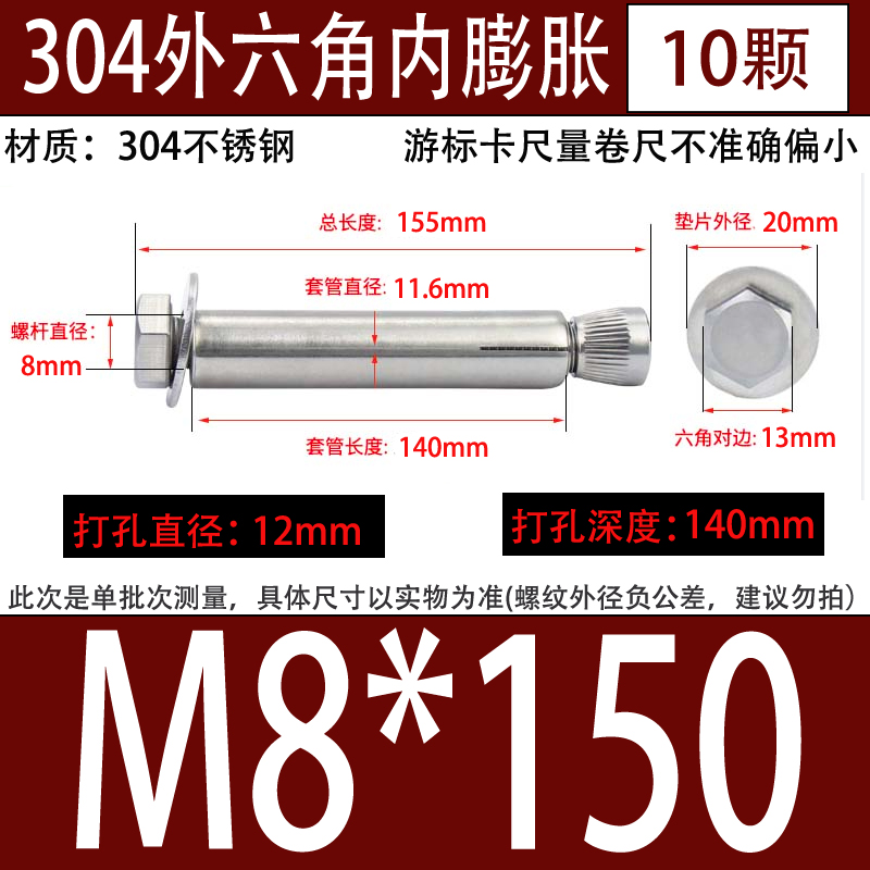 국가 표준 304 201 스테인레스 스틸 외부 육각 내부 확장 나사 내부 확장 볼트 내부 폭발 M6M8M10M12