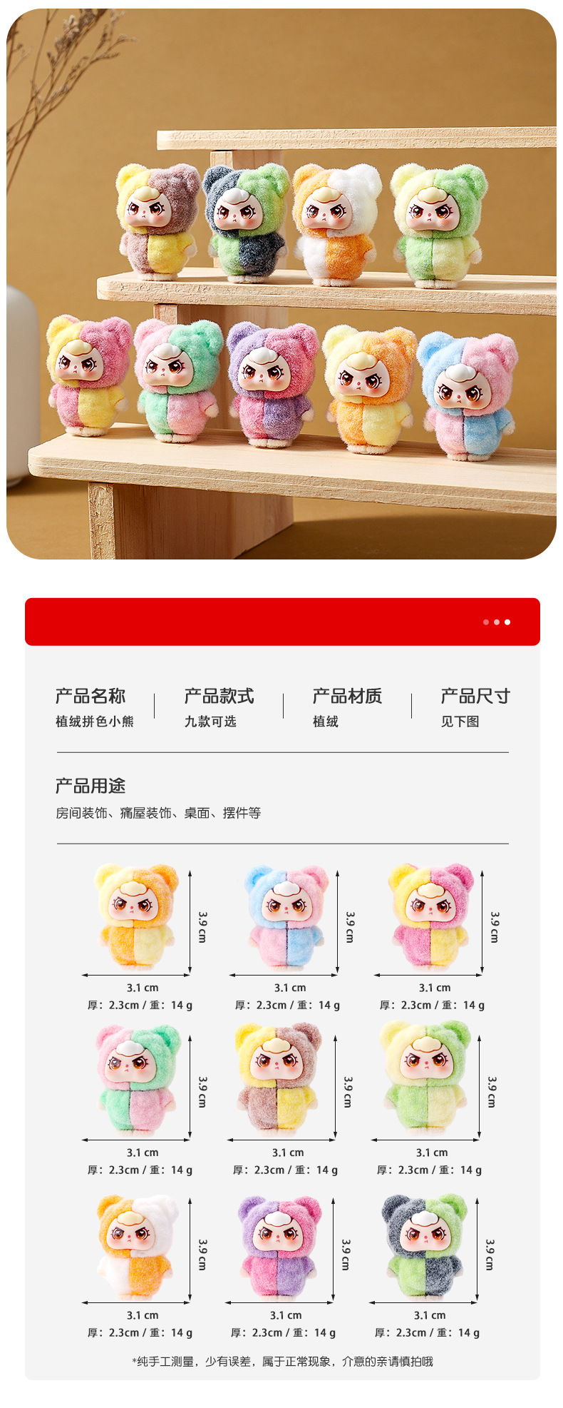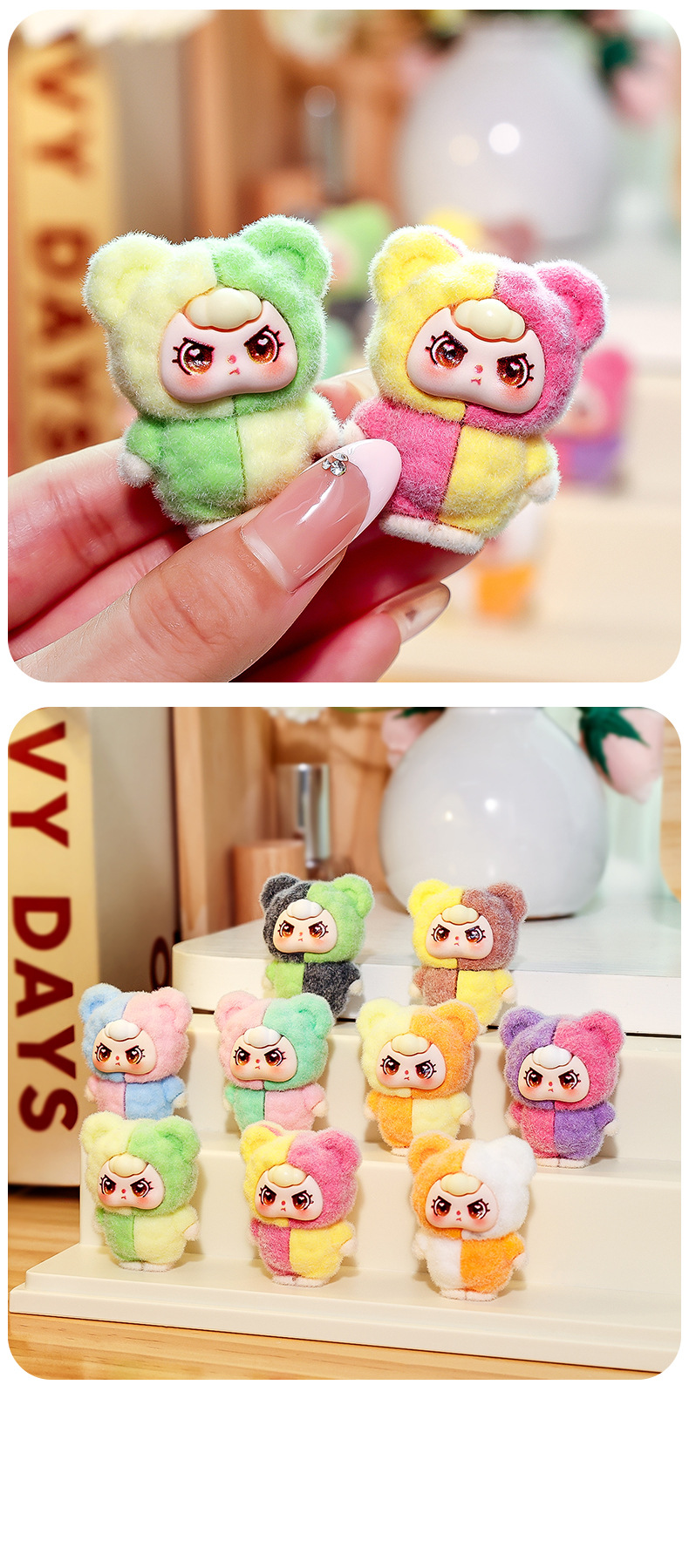컬러블록 디아오베어 DIY 액세서리 귀여운 수제 장식품 플로킹 인형 사무실 책상 장식품스토어 가기