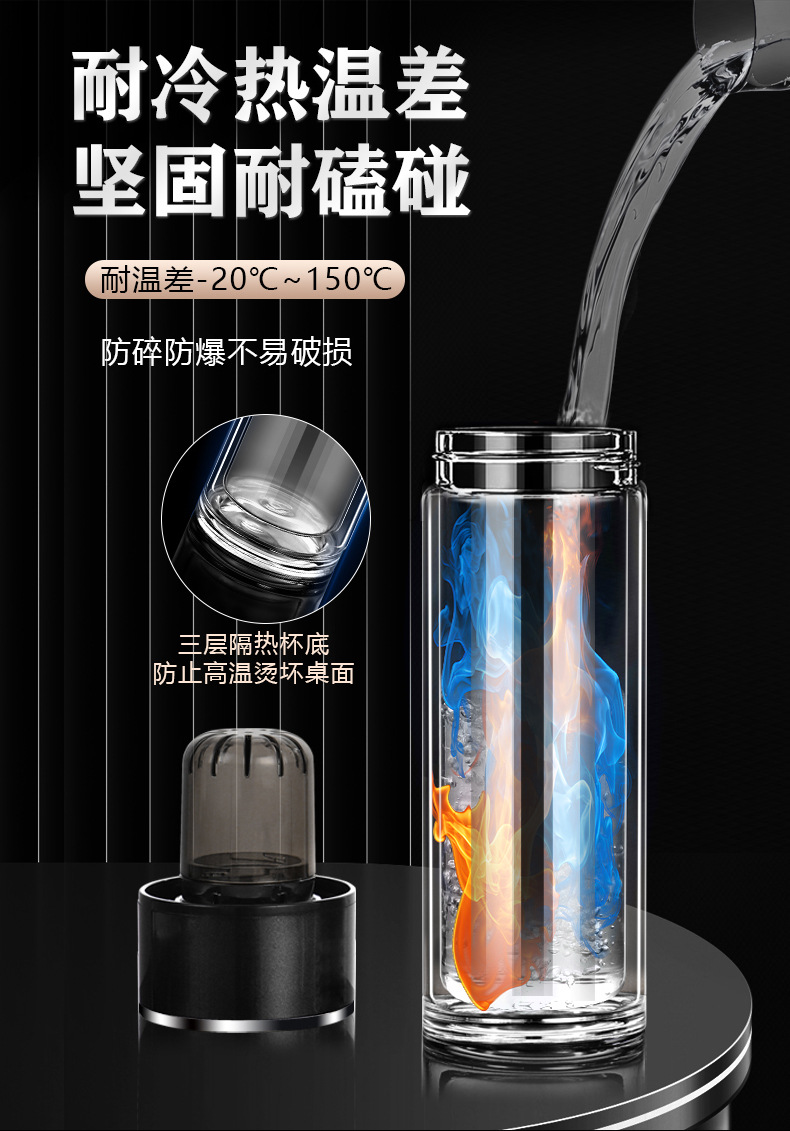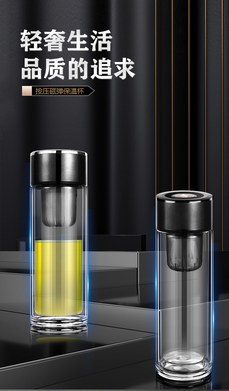 찻잔 자기 흡입 차 물 분리 컵 2025 새로운 사무실 더블 레이어 자기 버블 차 컵 두꺼운 화상 방지 유리 물 컵스토어 가기