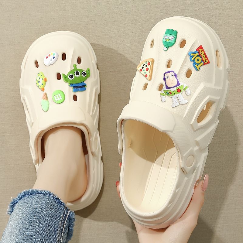 여름철 여성용 크록스 신발, 미끄럼 방지 두꺼운 밑창, 2023년 여성 간호사를 위한 새로운 만화 바오터우 비치 샌들