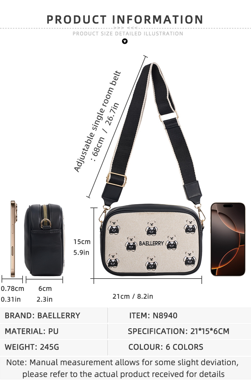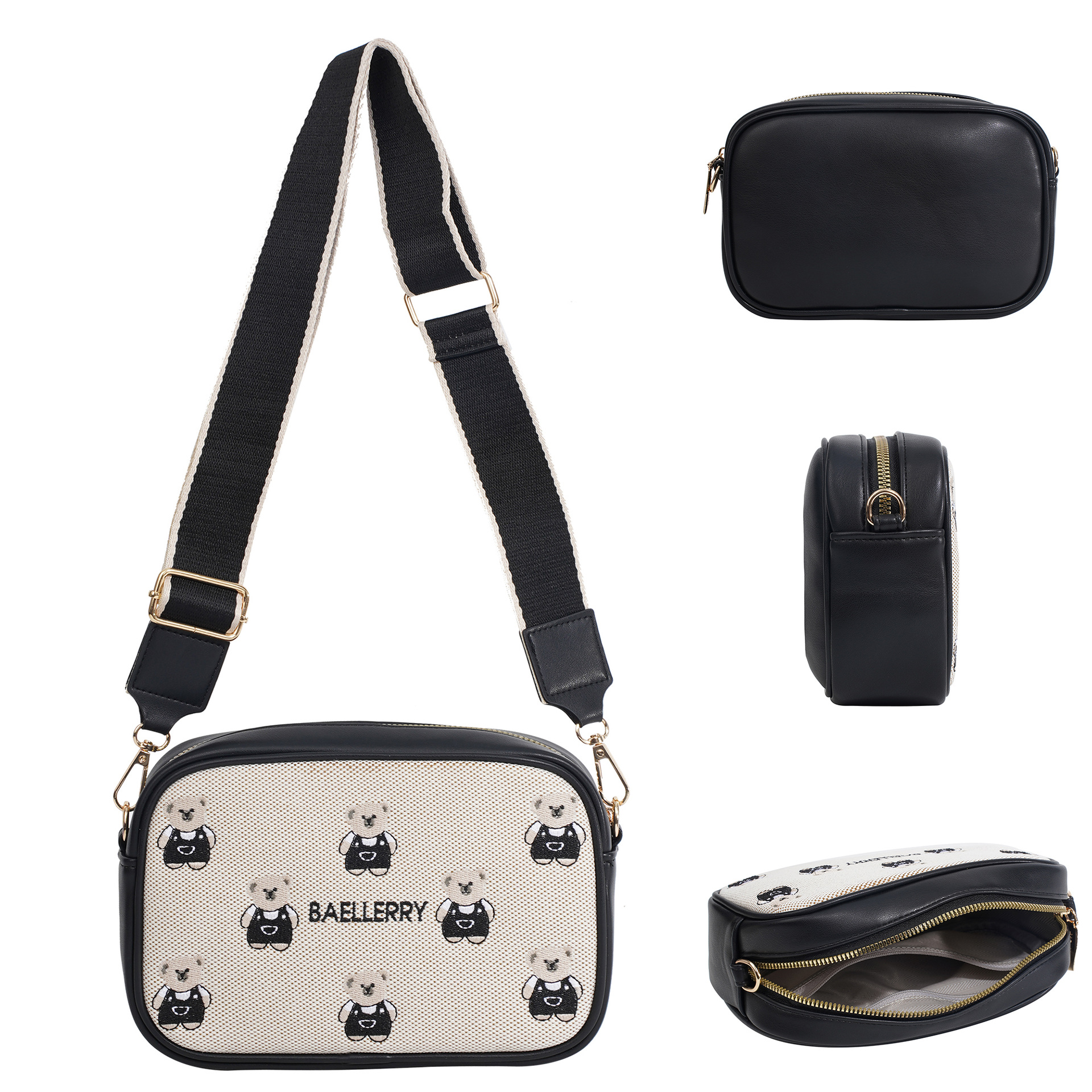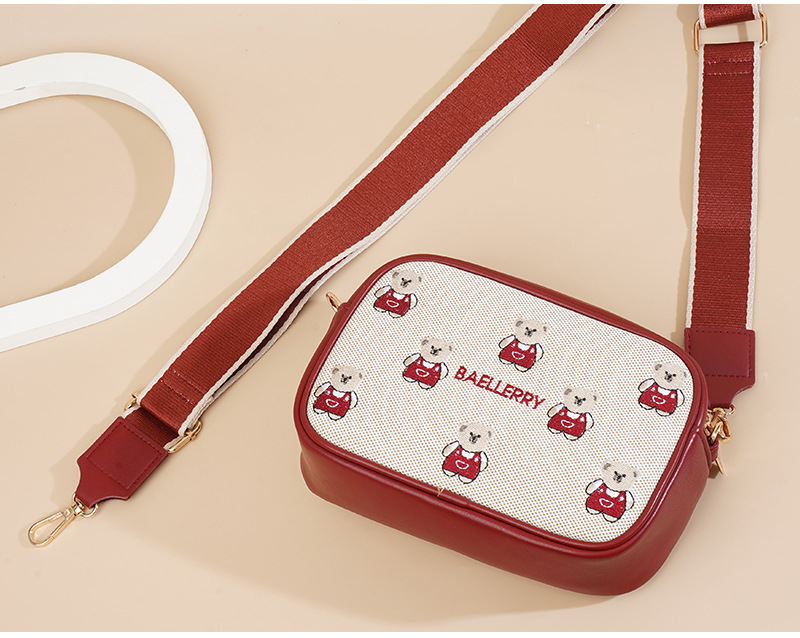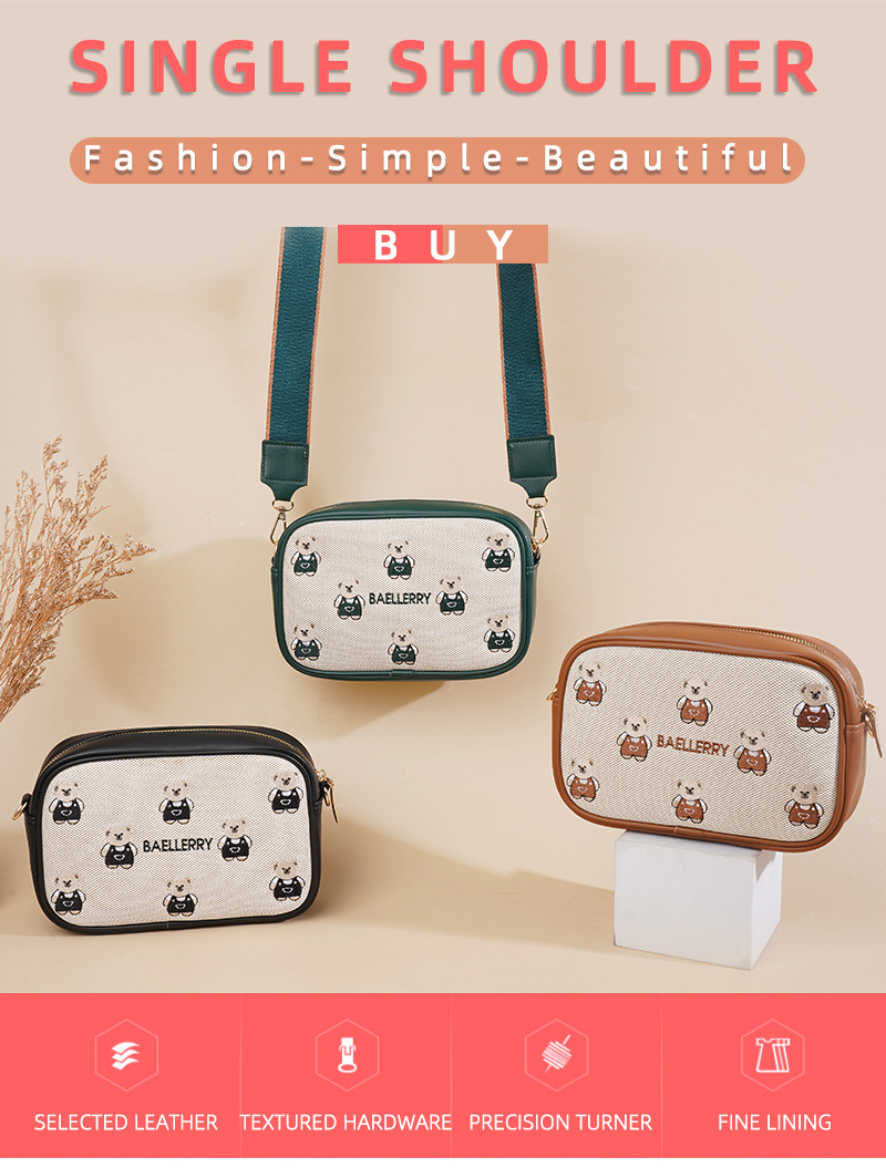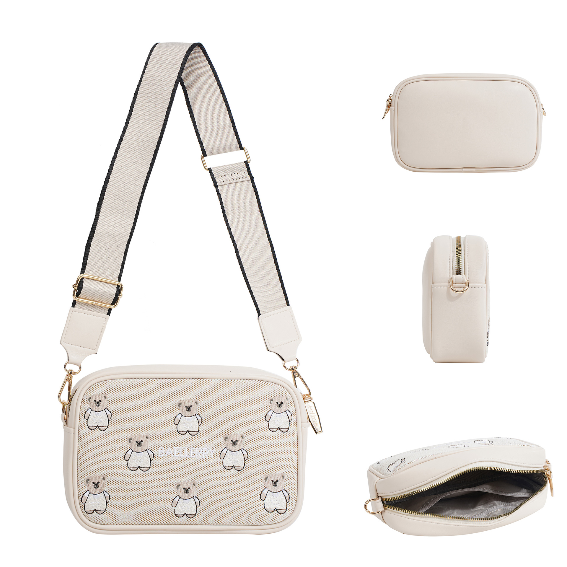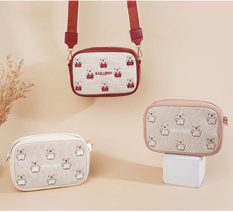 새로운 여성 가방 크로스 바디 가방 여성 귀여운 곰 자수 대용량 뜨거운 판매 여성 가방 여성을위한 패션 pu 휴대 전화 가방