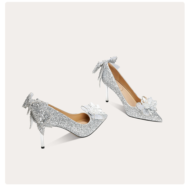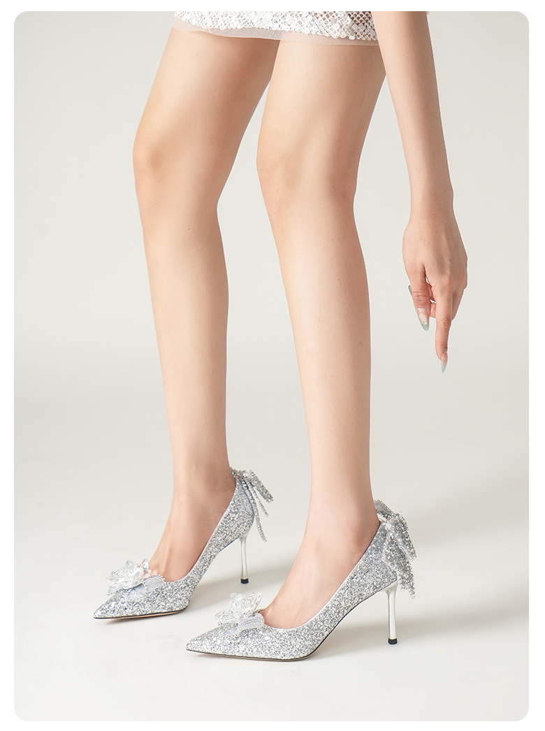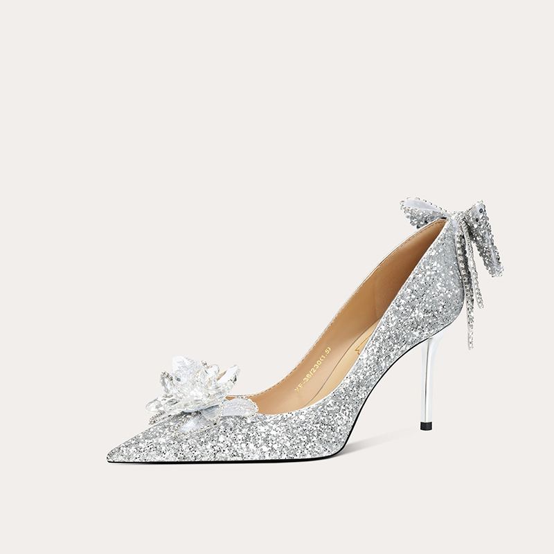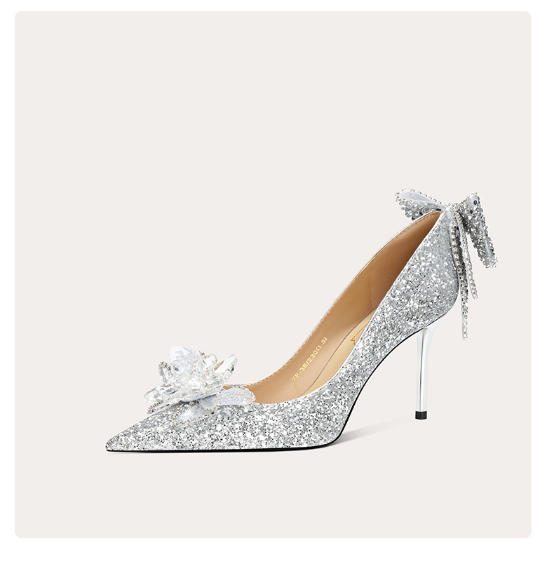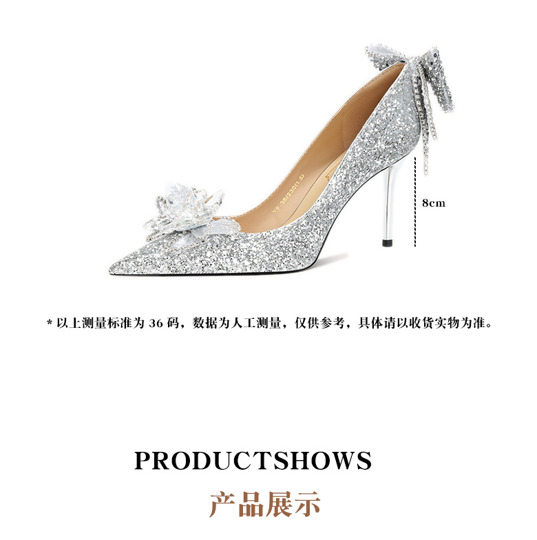 708-B13 여성을위한 새로운 스타일의 크리스탈 하이힐 18 세 성인식 공주 스틸레토 힐 보우 신부 결혼식 신발스토어 가기