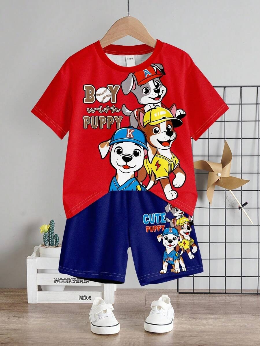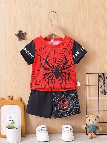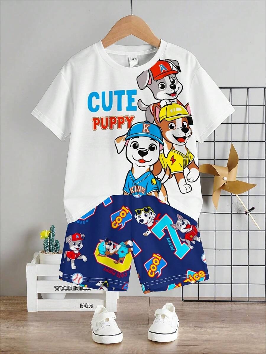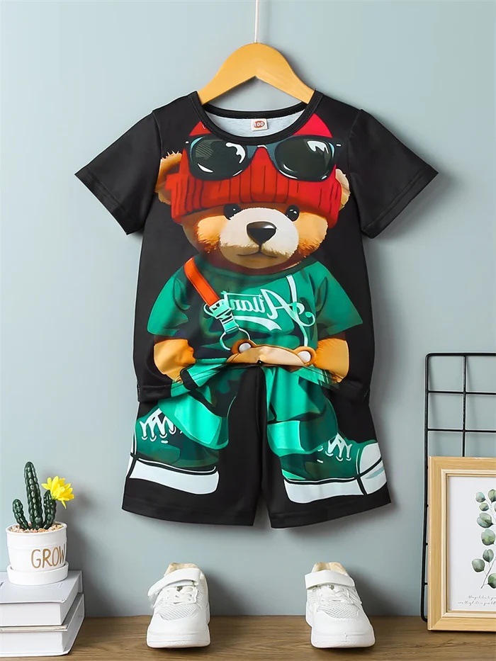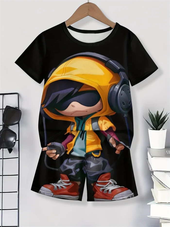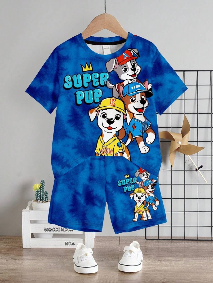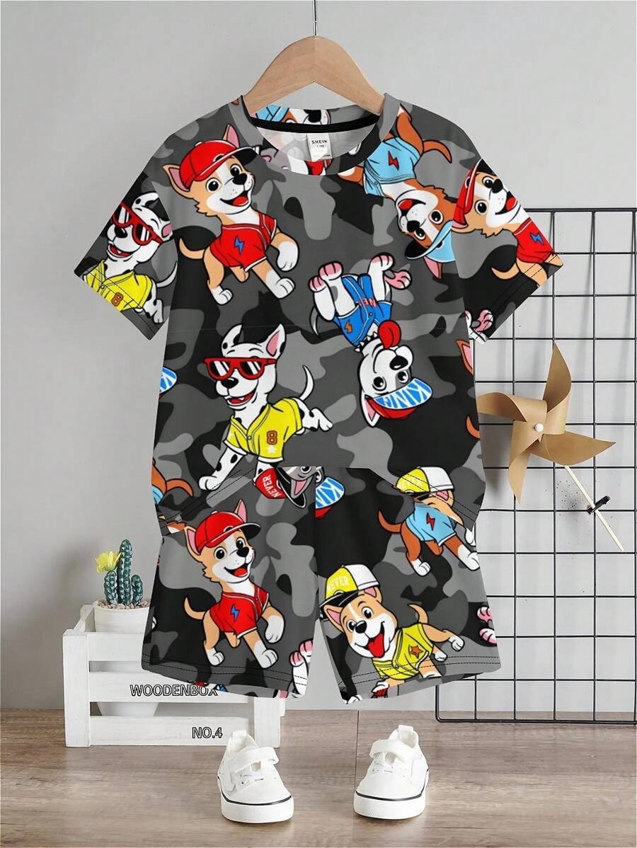 외국 무역 아동용 만화 프린트 반팔 세트 여름 라운드넥 티셔츠 반바지 유럽 및 미국 CPC 검사 인증서스토어 가기
