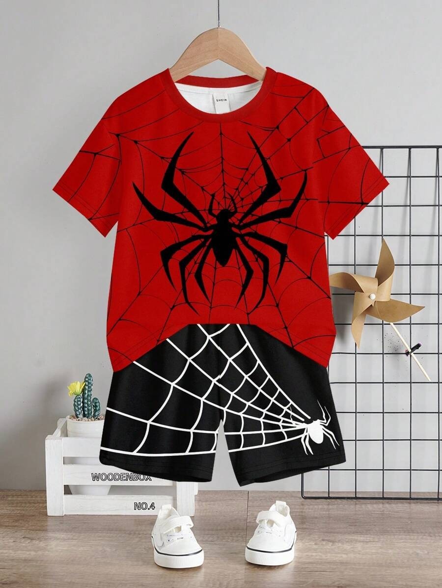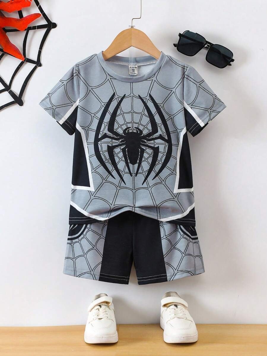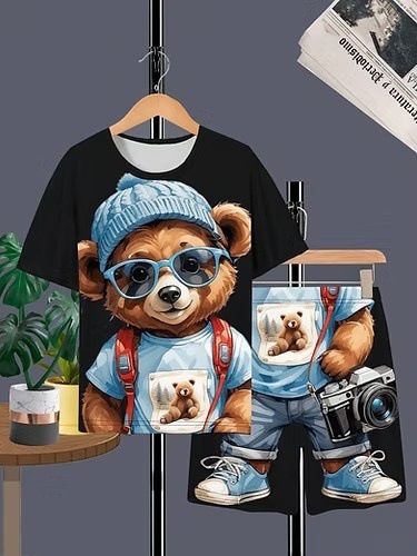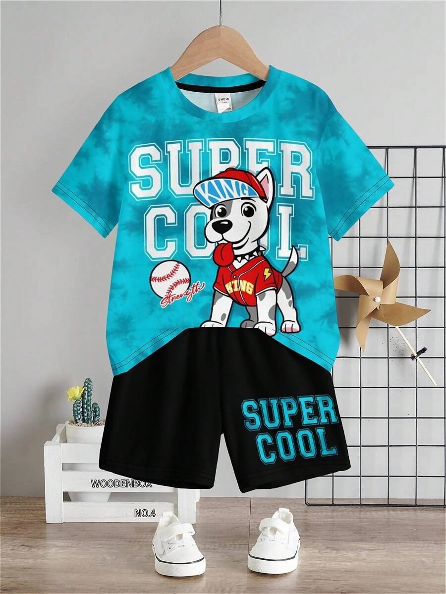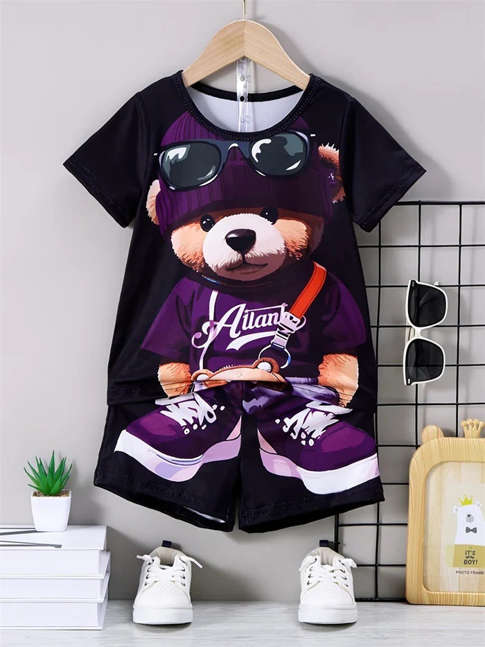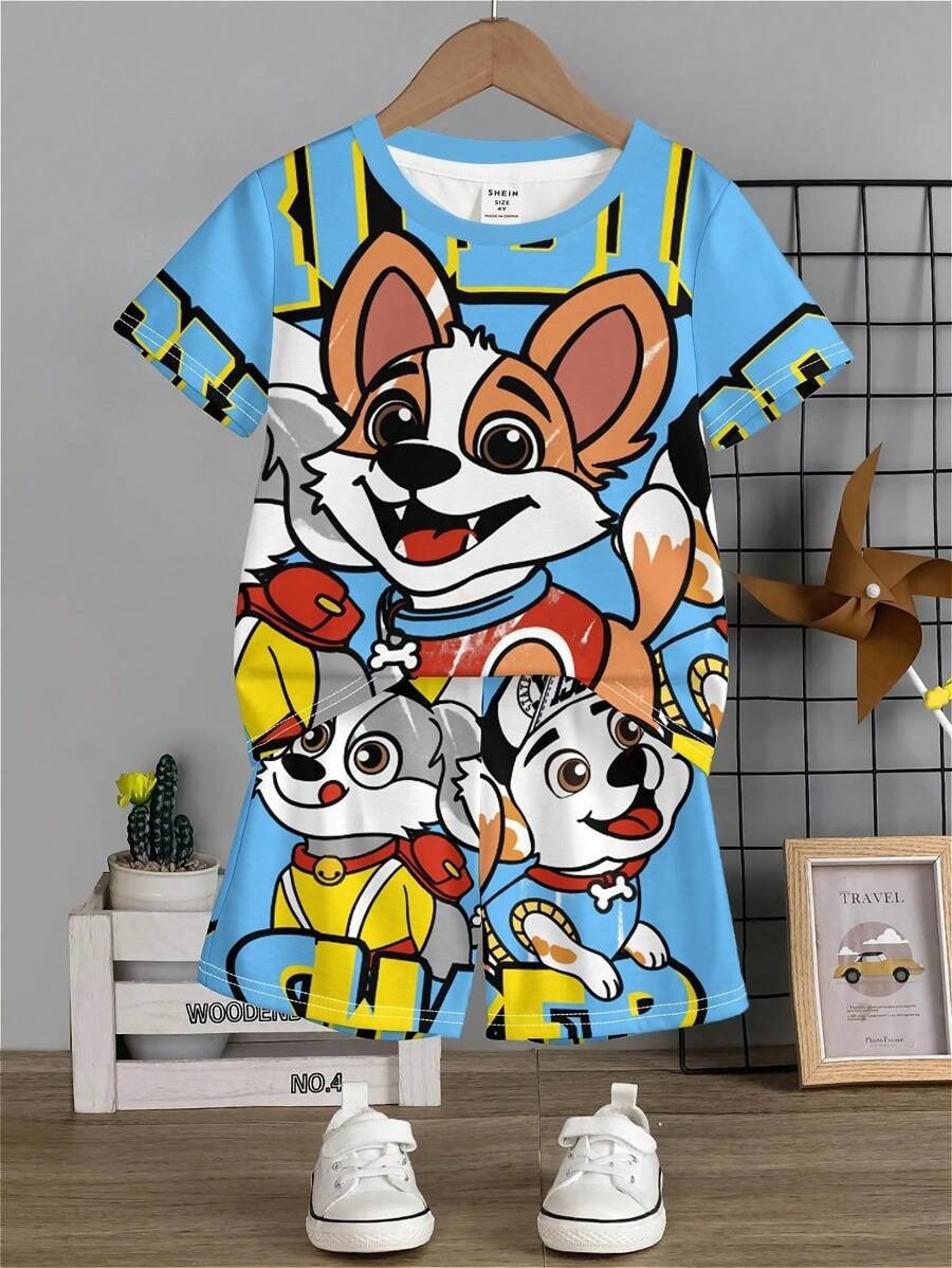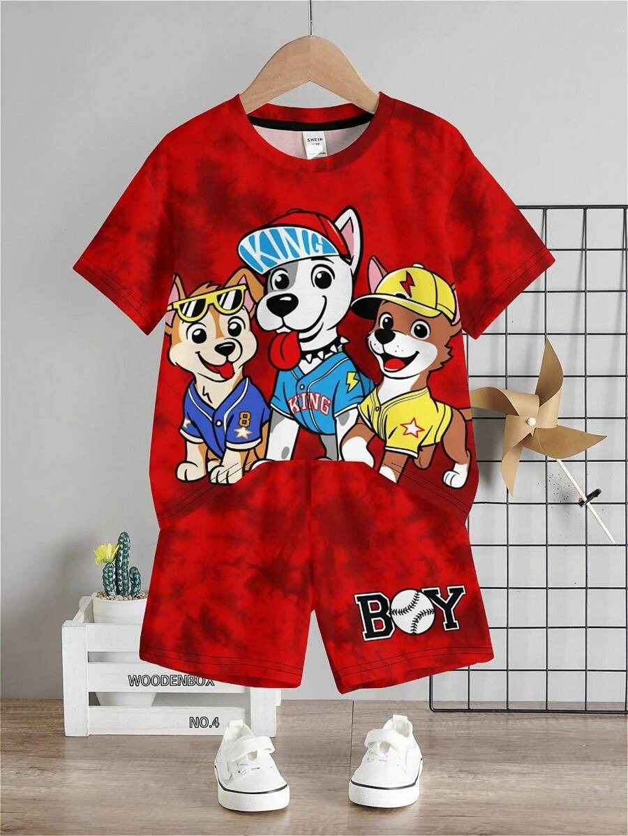 외국 무역 아동용 만화 프린트 반팔 세트 여름 라운드넥 티셔츠 반바지 유럽 및 미국 CPC 검사 인증서스토어 가기