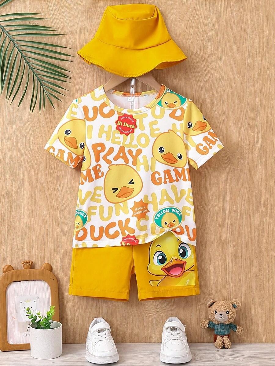 외국 무역 아동용 만화 프린트 반팔 세트 여름 라운드넥 티셔츠 반바지 유럽 및 미국 CPC 검사 인증서
