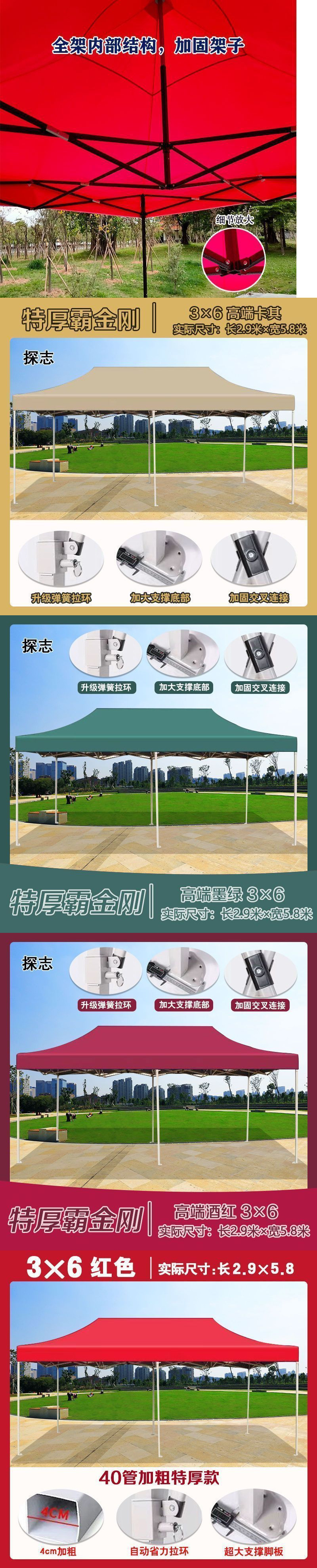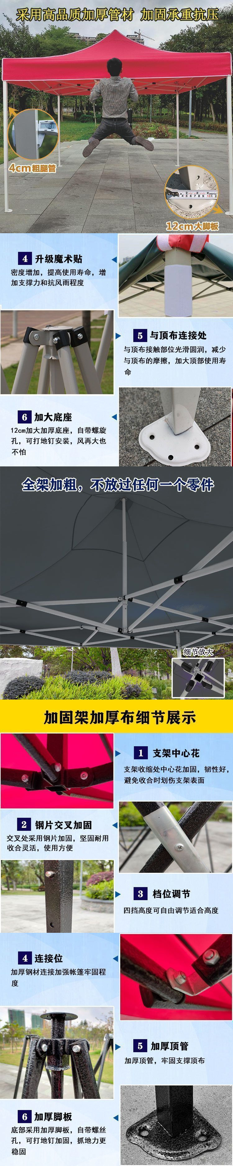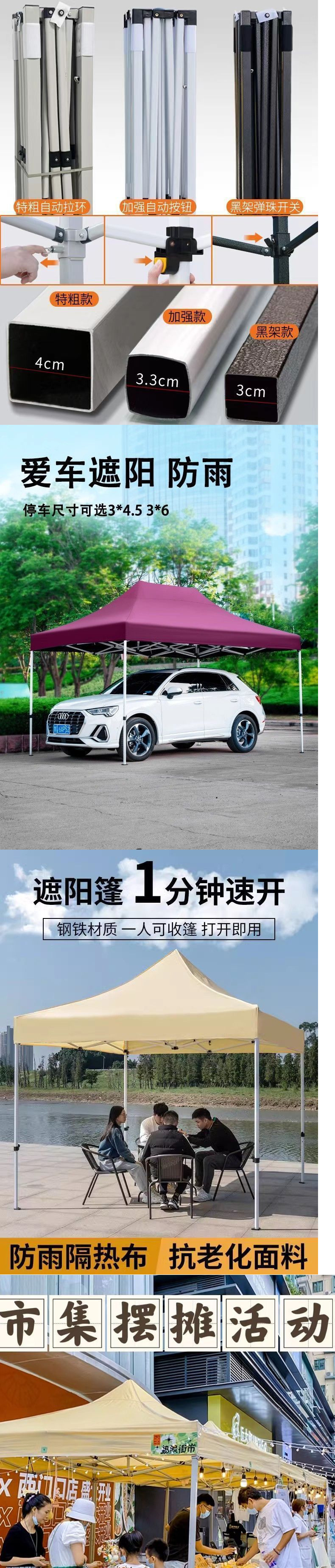 스탠드업 텐트, 대형 우산, 4각 접이식 텔레스코픽 4각 차양 광고 텐트, 야외 방수 및 자외선 차단 천막스토어 가기