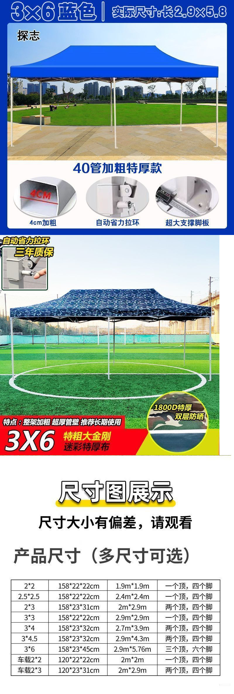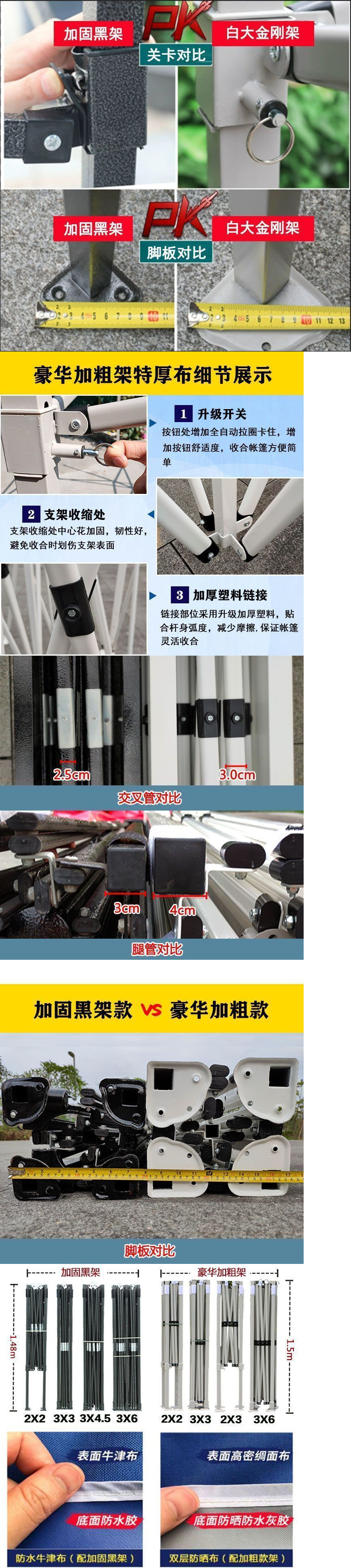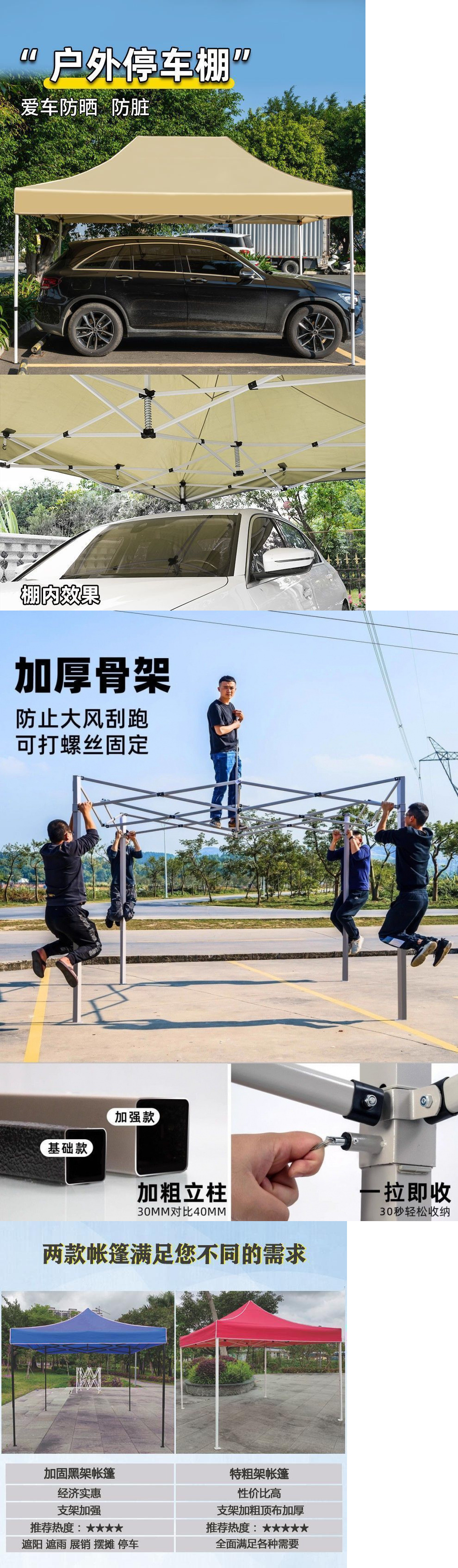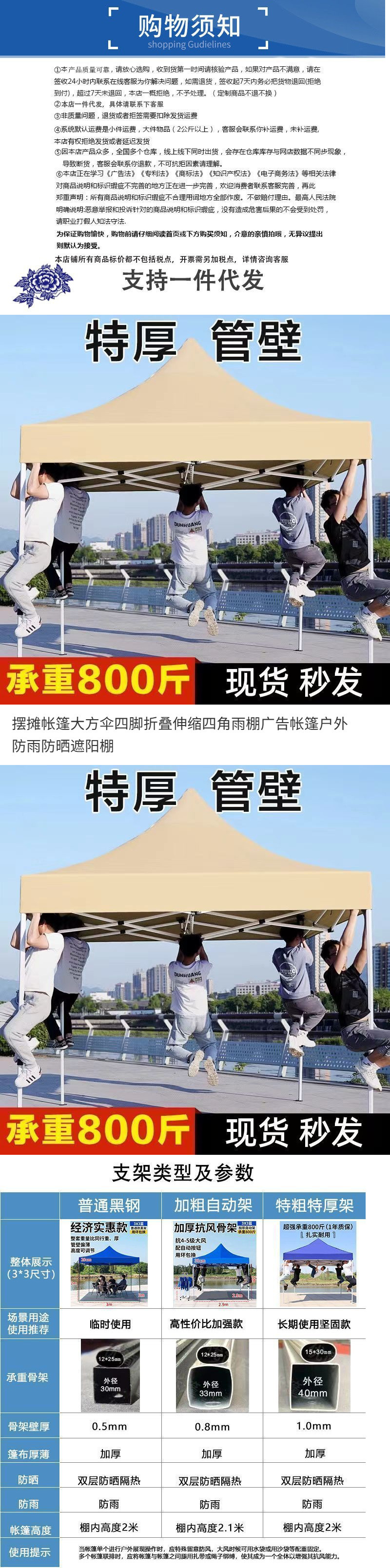 스탠드업 텐트, 대형 우산, 4각 접이식 텔레스코픽 4각 차양 광고 텐트, 야외 방수 및 자외선 차단 천막스토어 가기
