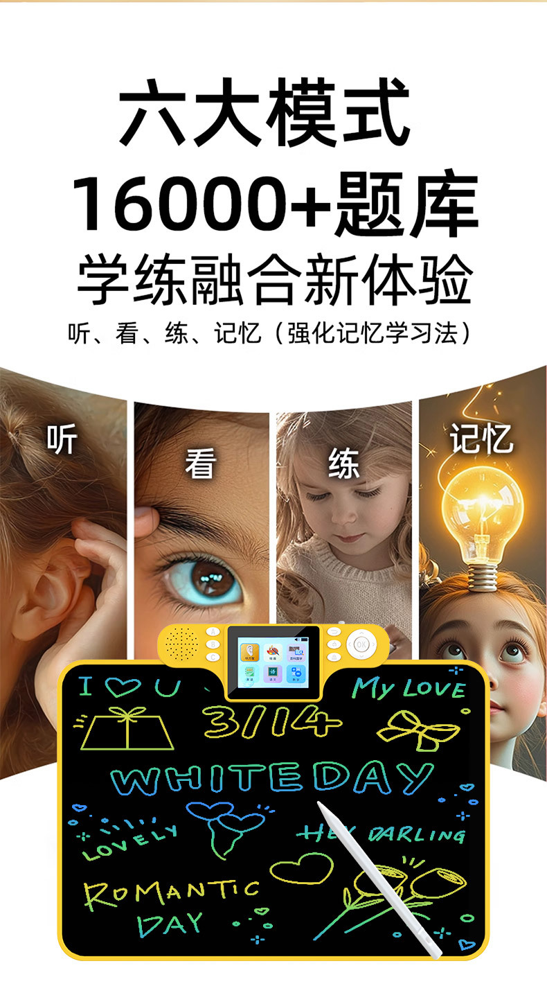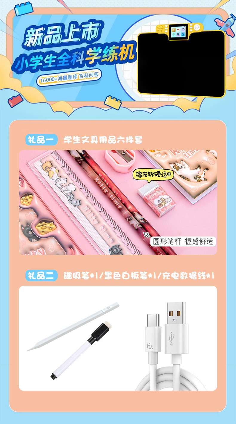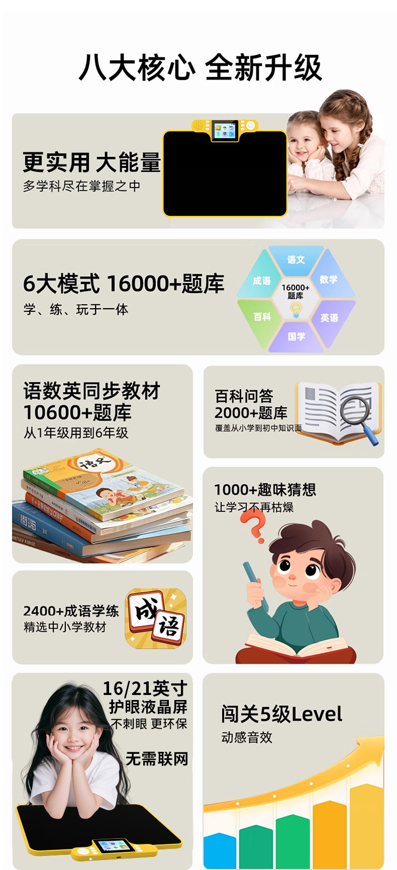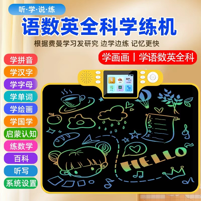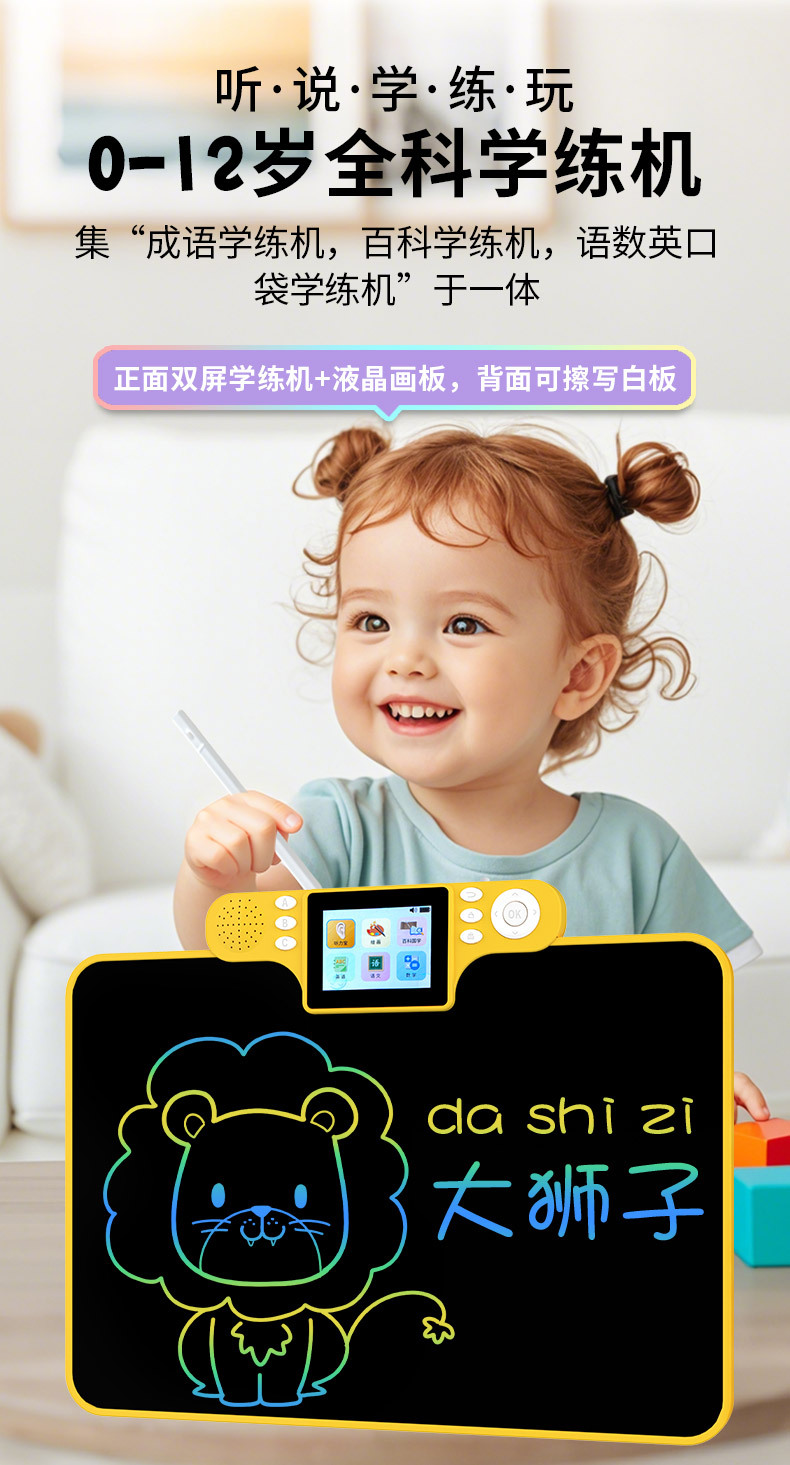어린이를 위한 비디오 그림 교육용 LCD 듀얼 스크린 스마트 학습기, 유아부터 초등학생까지의 중국어, 수학, 영어 전 과목 학습, 조기 교육스토어 가기