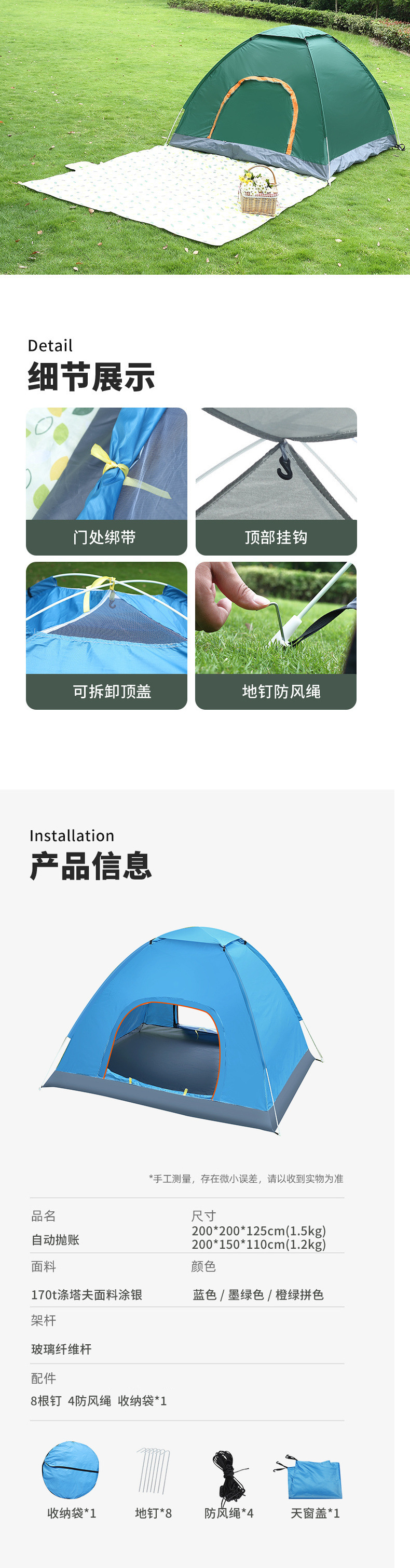 편리한 텐트, 자동 텐트, 일체형, 휴대 및 보관이 용이함, 접이식 텐트, 야외 캠핑용 접이식 텐트스토어 가기
