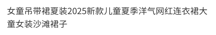 여자 서스펜더 스커트 여름 드레스 2025 새로운 어린이 여름 스타일 인터넷 연예인 드레스 큰 어린이 여성 비치 스커트스토어 가기