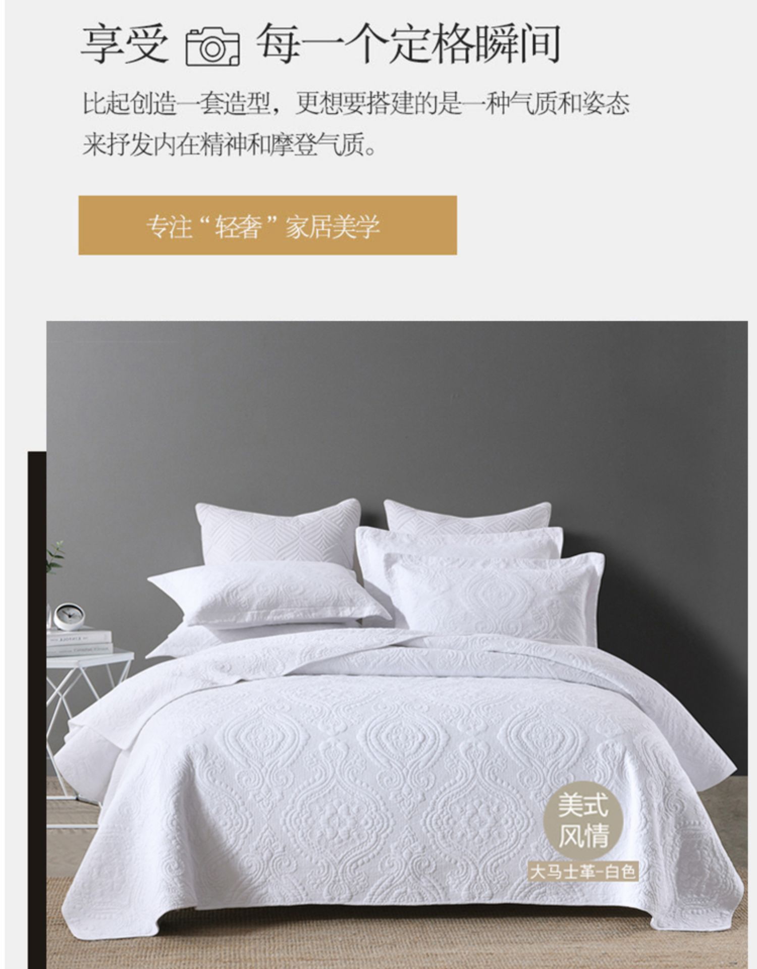 ✅ 수출 양면 침대 커버 라이트 럭셔리 화이트 퀼트 이불 3피스 세트 퀼트 침대 시트 올 시즌스토어 가기
