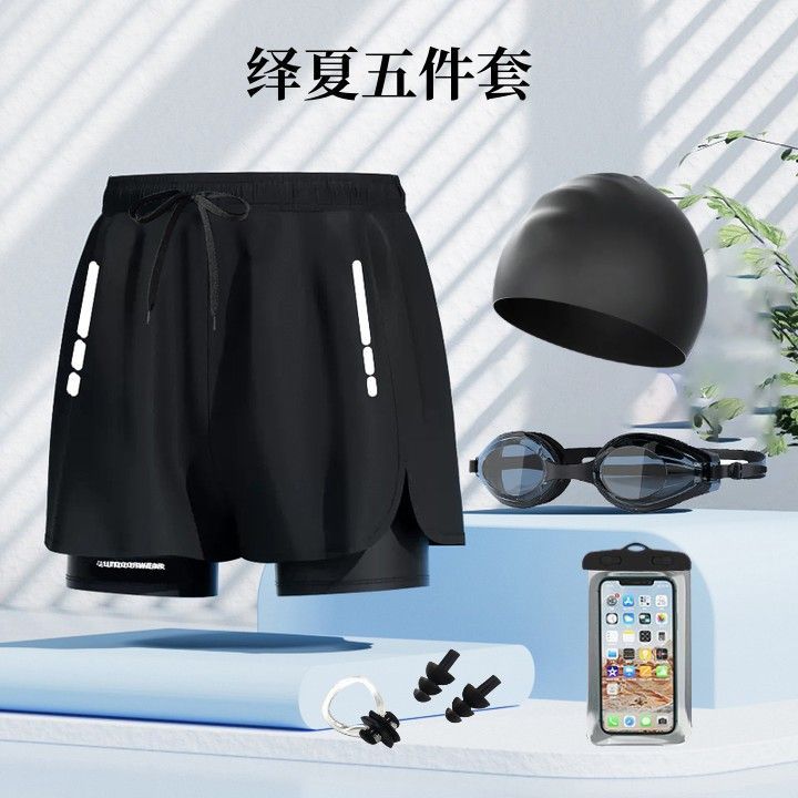 • 검정색 수영 트렁크 + 검정색 전기도금 수영 고글(코 클립 및 귀마개 포함) 3601+7000
