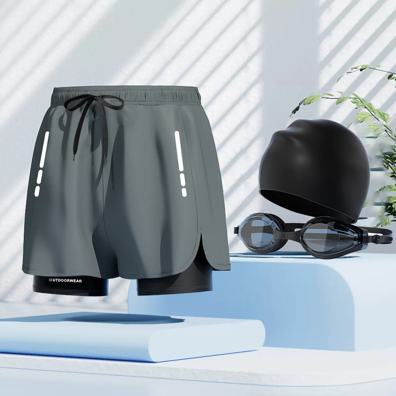 • 회색 수영 트렁크 + 수영 고글 + 수영 모자 3601