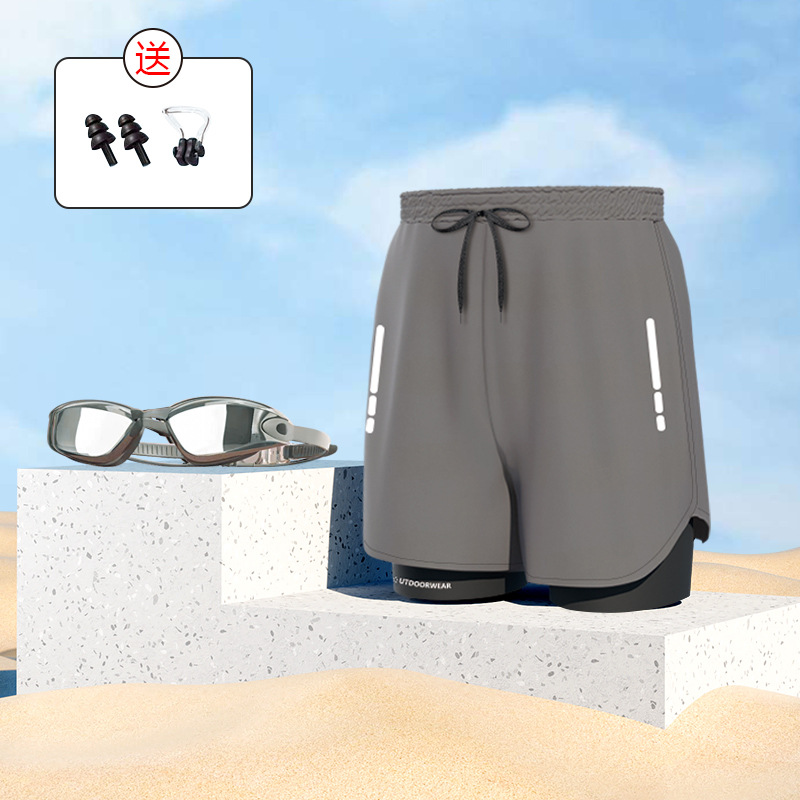• 회색 수영 트렁크 + 회색 전기 도금 수영 고글 (코 클립 귀마개 포함) 3601+7000