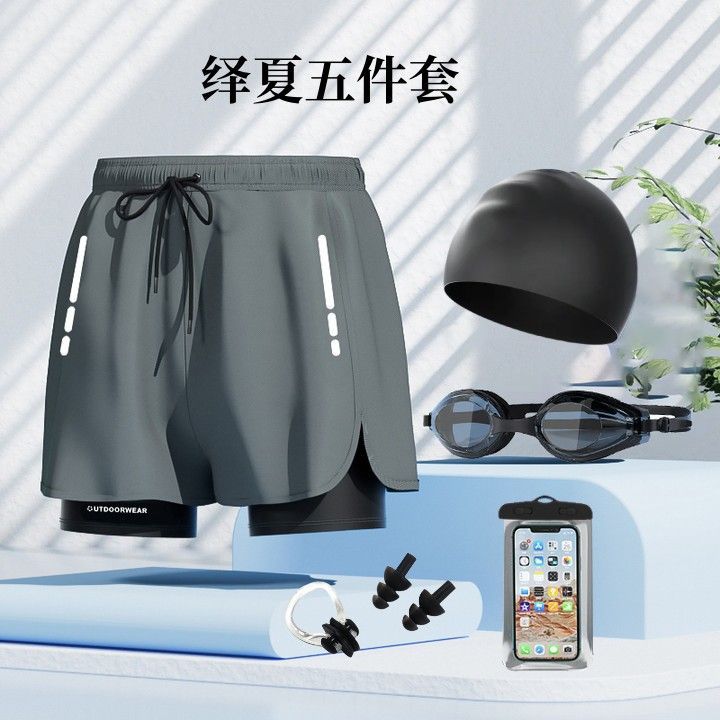 • 회색 수영 트렁크 + 수영 고글 + 수영 모자 + 방수 가방 + 코 클립 귀마개 3601