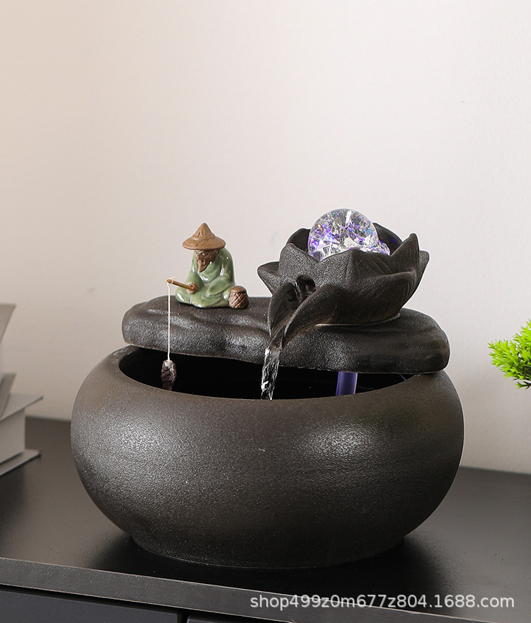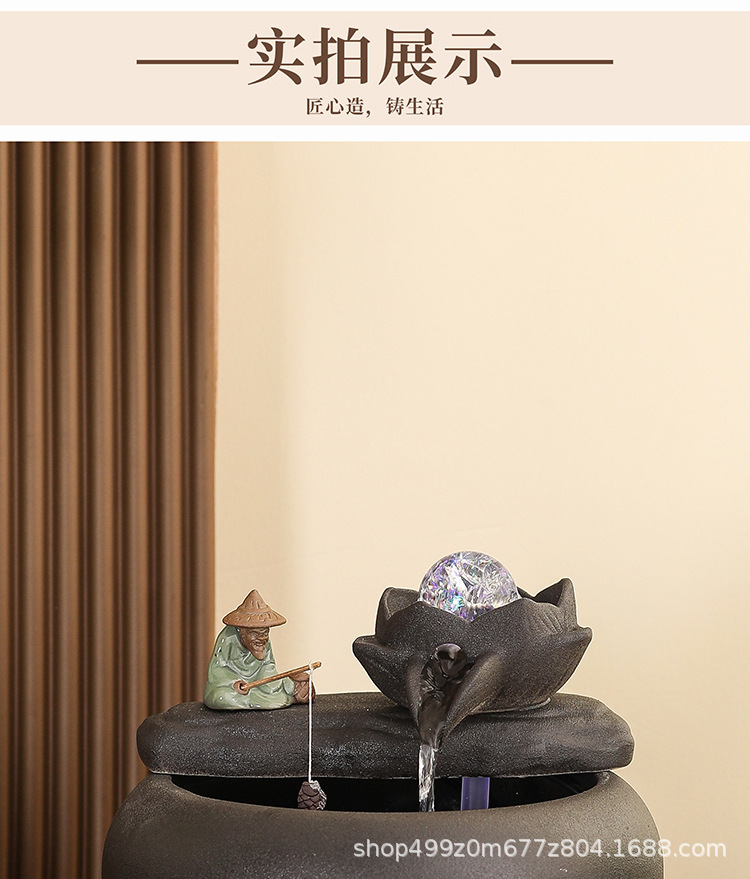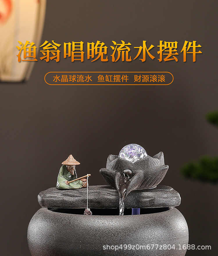 운이 좋은 풍수 공, 흐르는 물 장식품, 순환 물 분수, 거실 행운의 차 테이블, 데스크탑 수조 장식