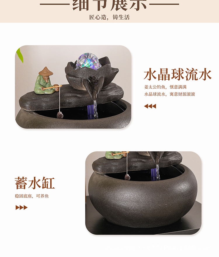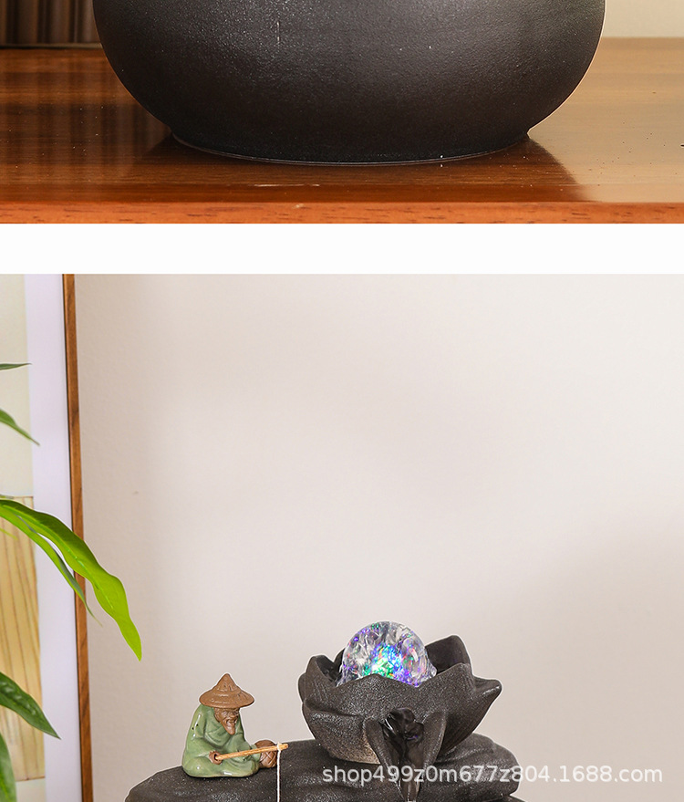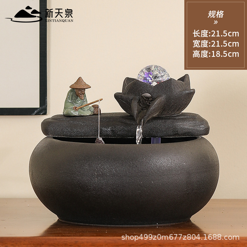 운이 좋은 풍수 공, 흐르는 물 장식품, 순환 물 분수, 거실 행운의 차 테이블, 데스크탑 수조 장식스토어 가기