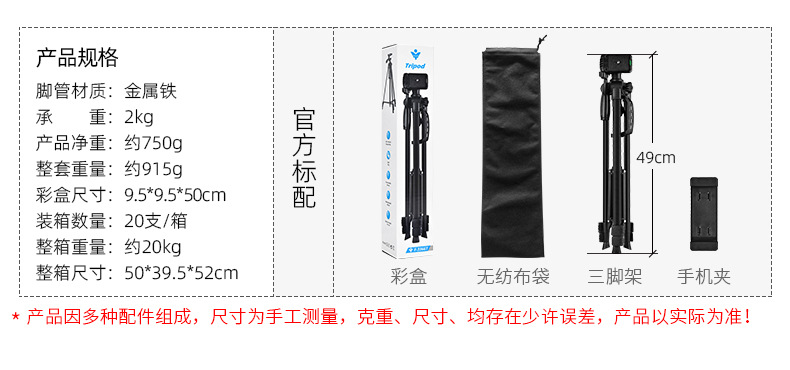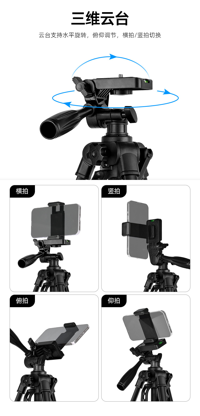 F3366T 야외 라이브 방송 1.4m 휴대 전화 홀더 마이크로 싱글 프로젝터 야간 낚시 램프 휴대 전화 라이브 방송 삼각대